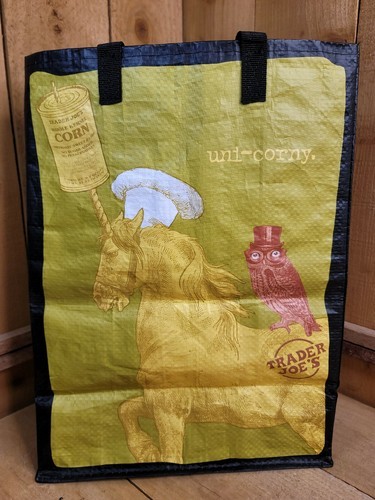 Trader Joe's Reusable Shopping Tote Bag Perky Owl & Uni-Corny 16 x 12"