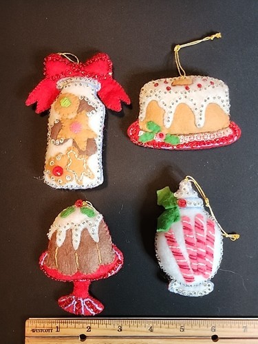 VTG Bucilla Christmas Goodies 4 Felt Jeweled Sequined Christmas Ornaments 48988