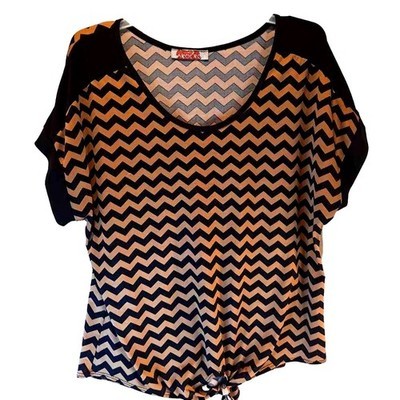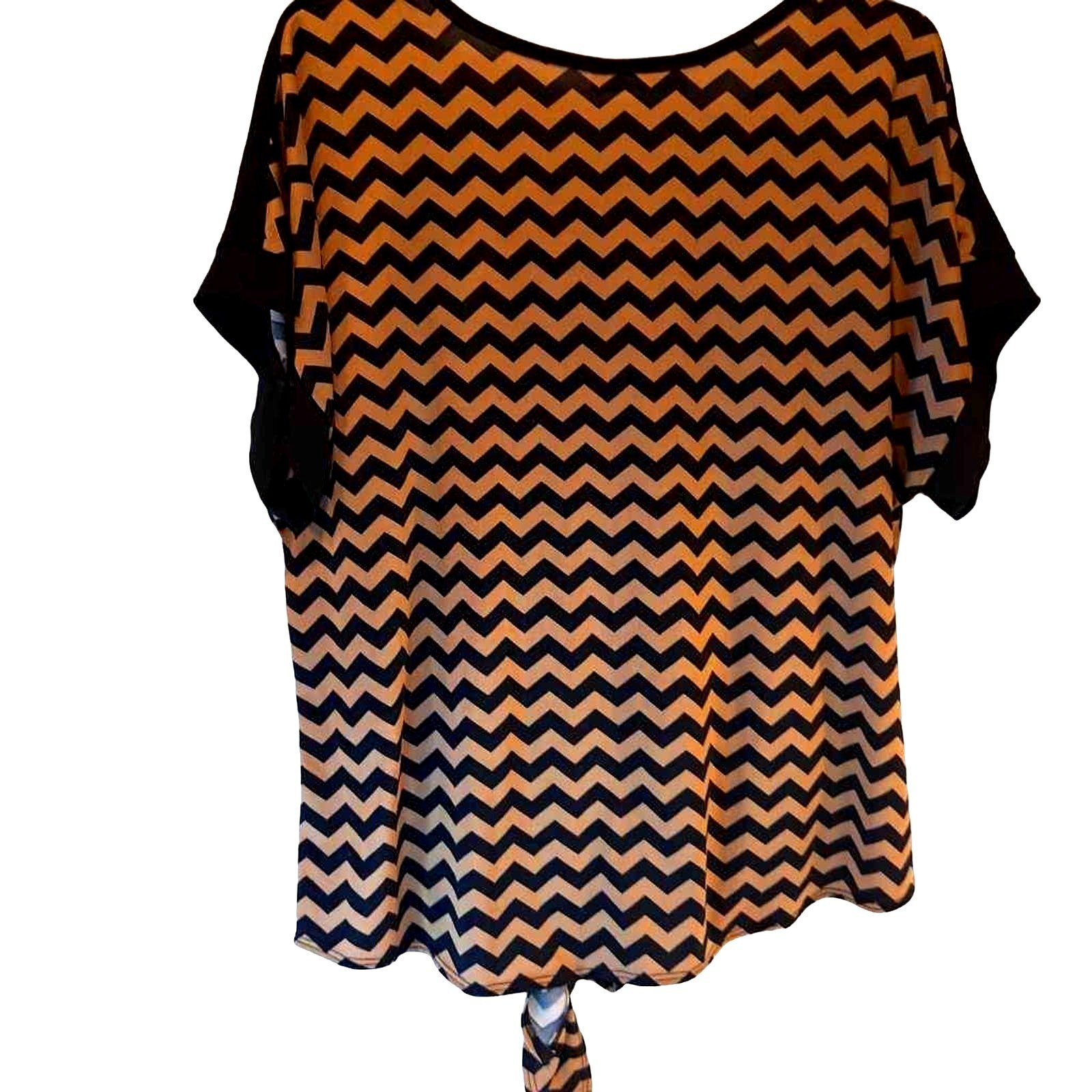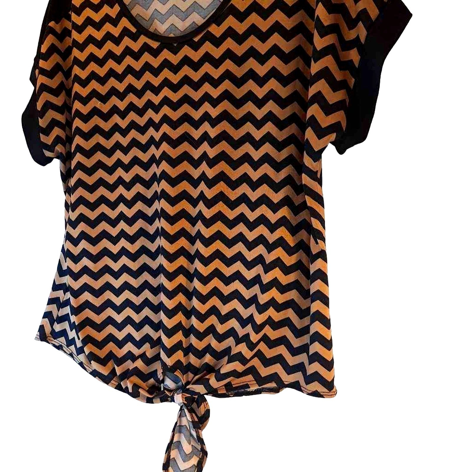 Carol Rose Women's T-Shirt Brown Black Chevron Short Sleeve Front Knot Stretch XL