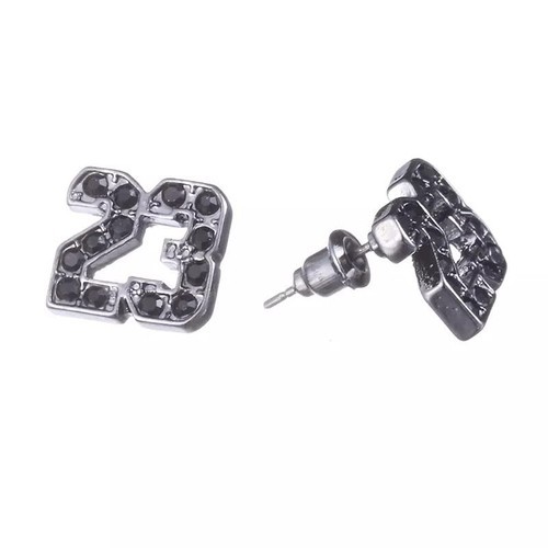 Michael Jordan Earrings 23 Jumpman Earring - Silver - Plated Black Rhinestones Metal Stud