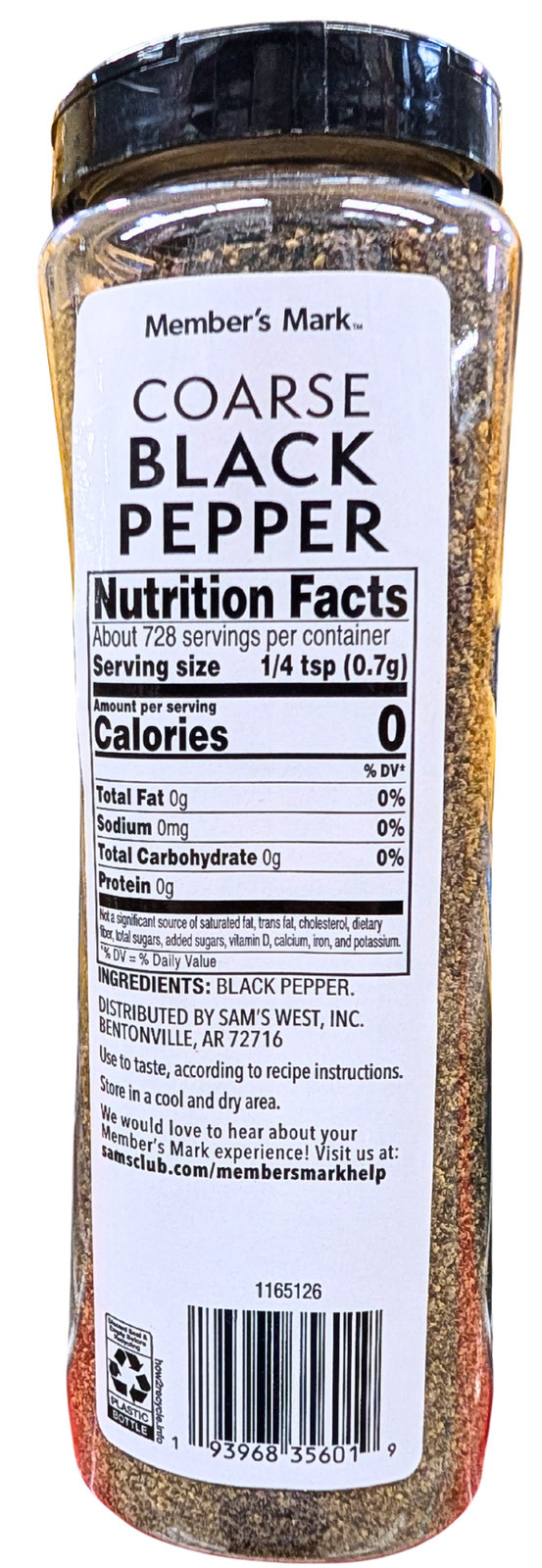 Member's Mark Restaurant Coarse Black Pepper 18 Oz EXP 07/2028