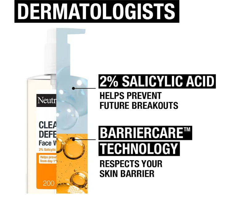 Neutrogena Clear Defend 2% Salicylic Acid Face Wash cleanses spot-prone skin and is clinically proven to help prevent future breakouts.