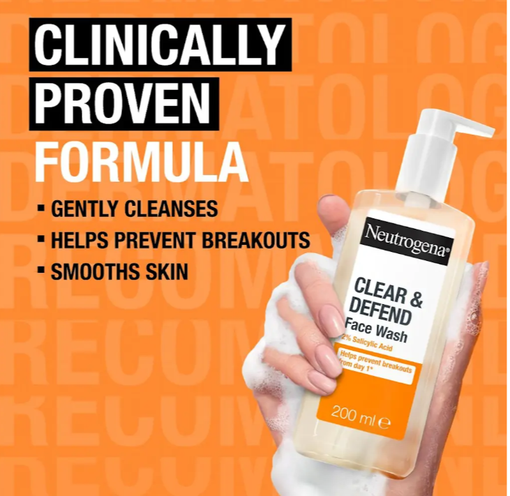 Neutrogena Clear & Defend 2% Salicylic Acid Face Wash 200ml