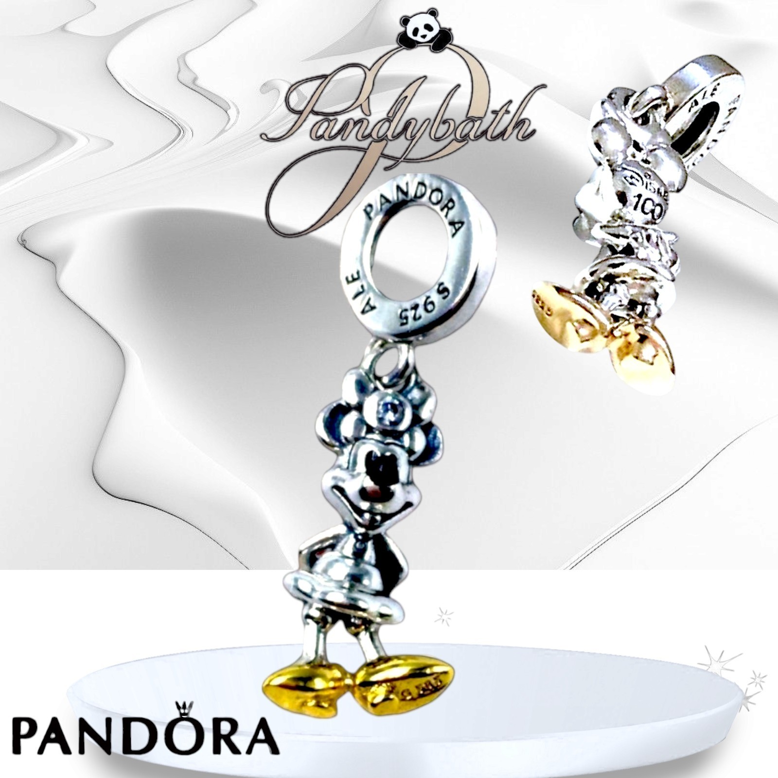 The product is a 100% authentic PANDORA charm celebrating the 100th anniversary of Disney. The charm features a Minnie Mouse design and is made of sterling silver with a diamond as the main stone. It is a dangle charm, perfect for adding a touch of charm to any bracelet or charm collection. This limited edition piece makes for a special and unique addition to any jewelry collection, especially for those who are fans of Disney or PANDORA.
