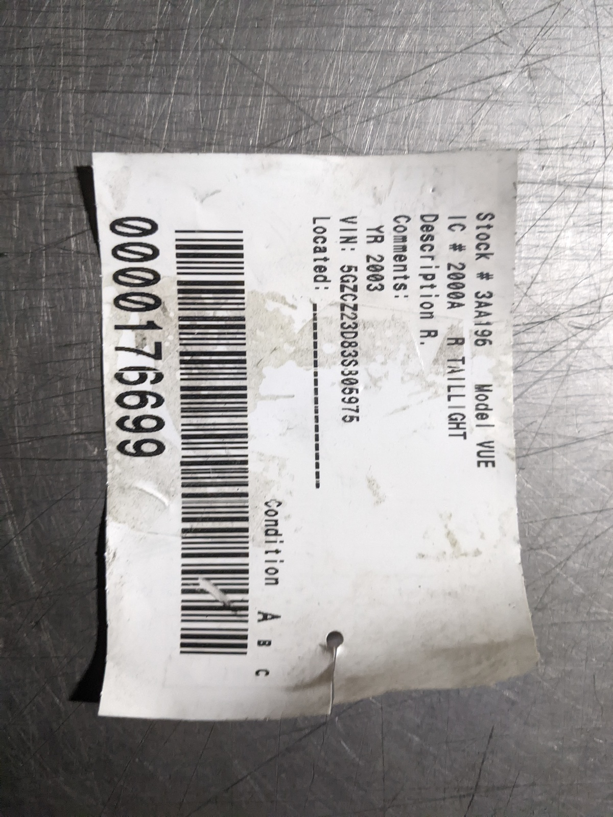Passenger Right Tail Light For 02-03 Saturn Vue 2.2
