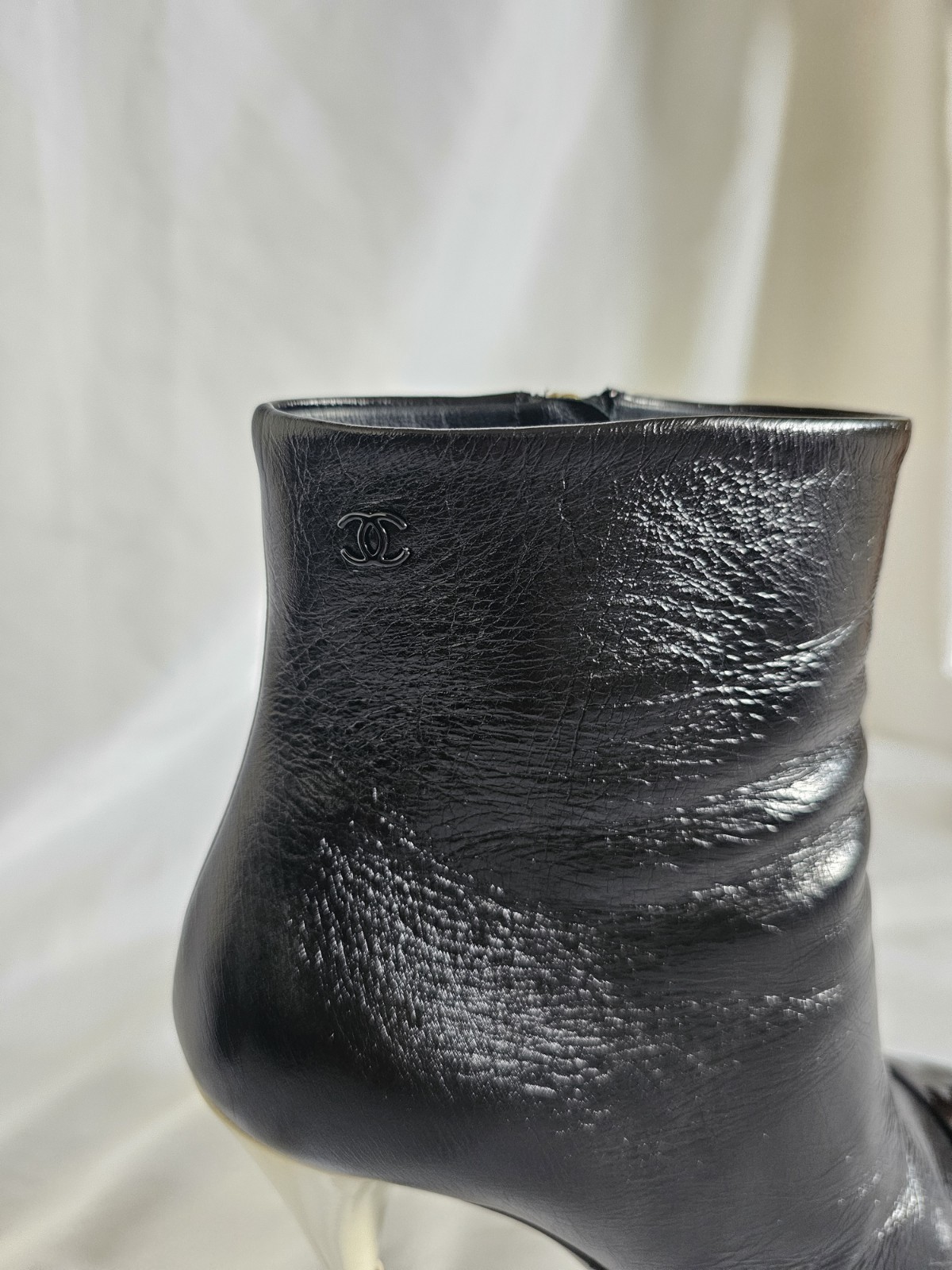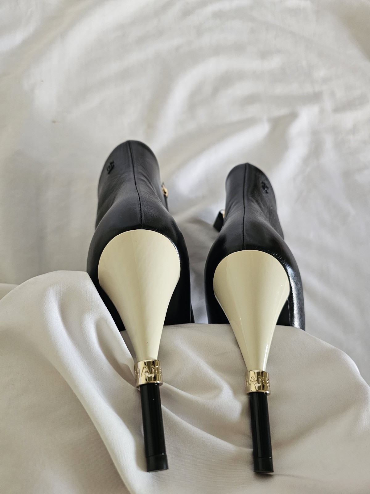 Metal Chanel accent on the heel