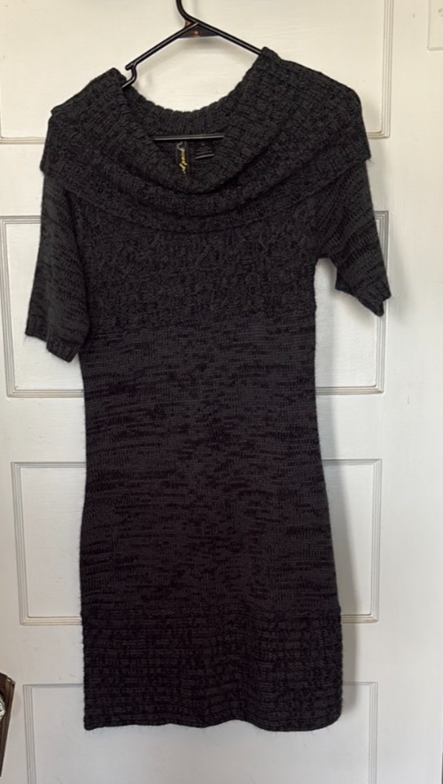 Red Paint Black Knit Cowl Neck Dress Size XL. Stylish black knit dress with a cowl neck. Perfect for any occasion. Armpit to armpit measures 17?. Shoulder to hem is 38?. 100% Acrylic and Machine Washable. Very Good Used Condition - See photos for further description.