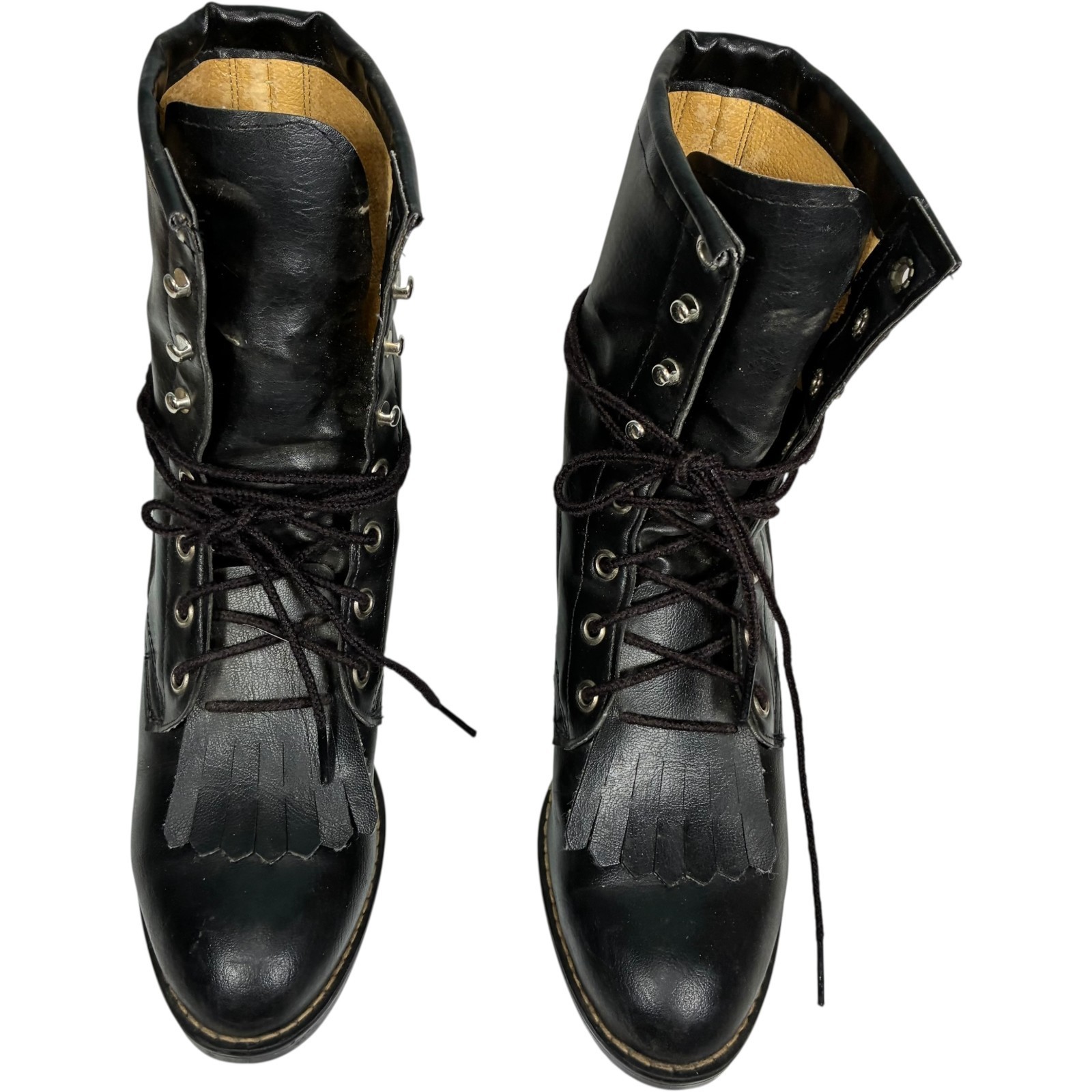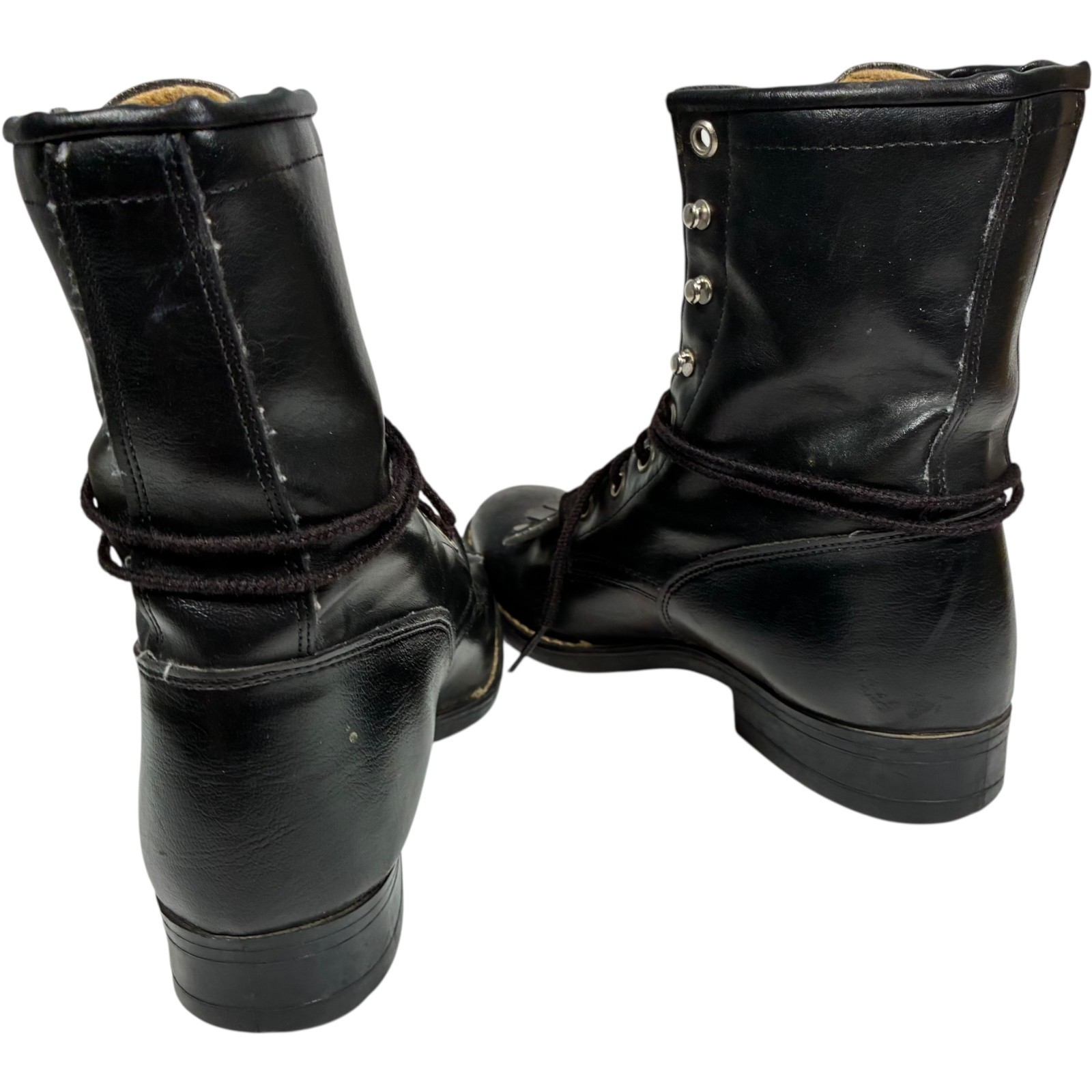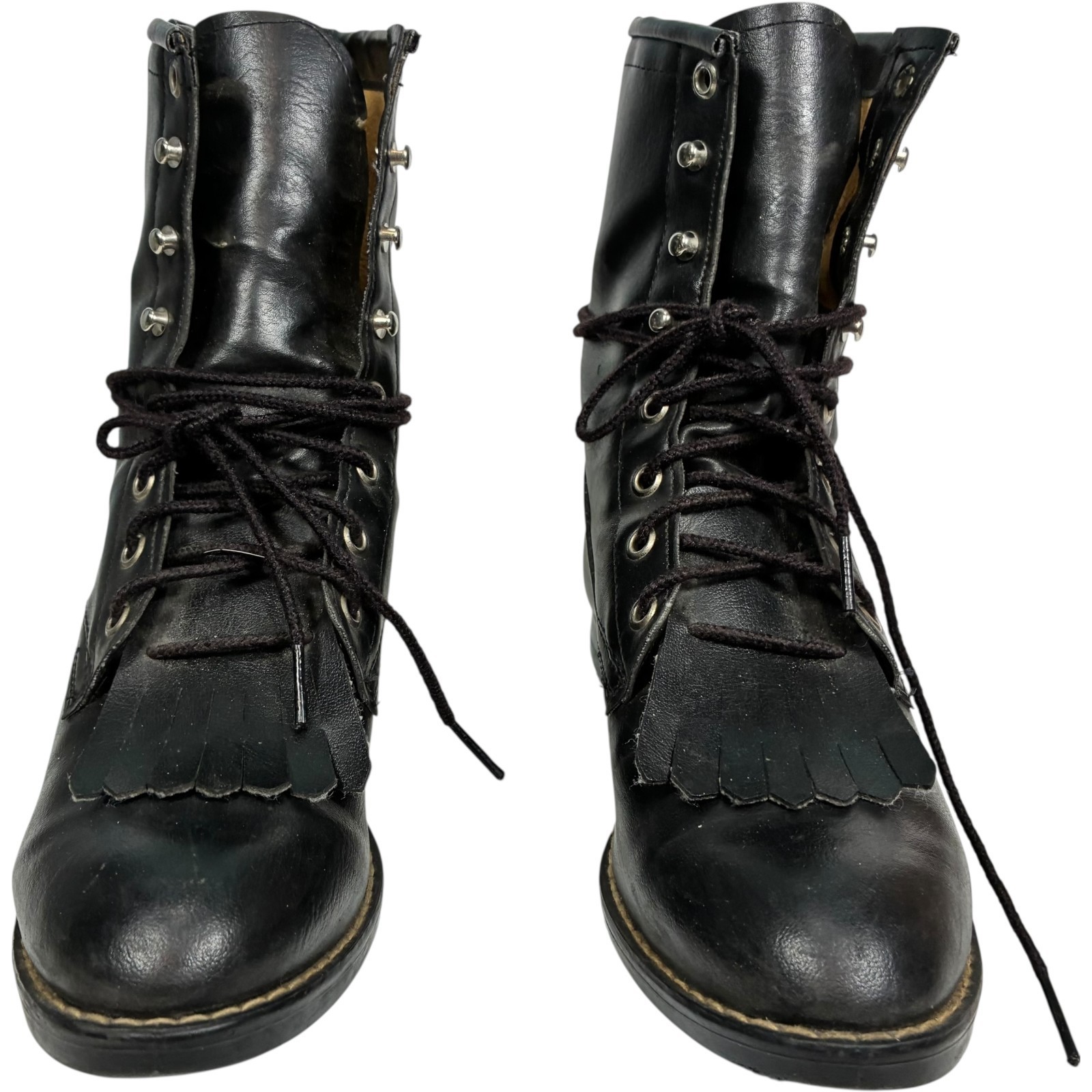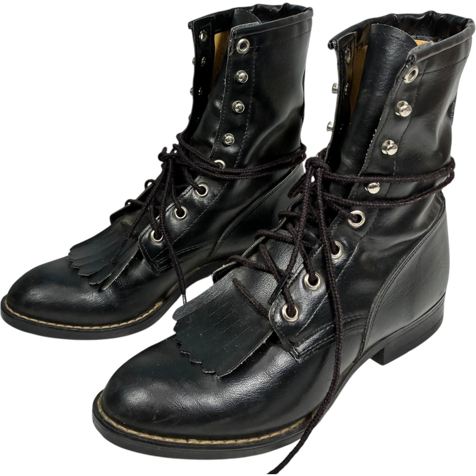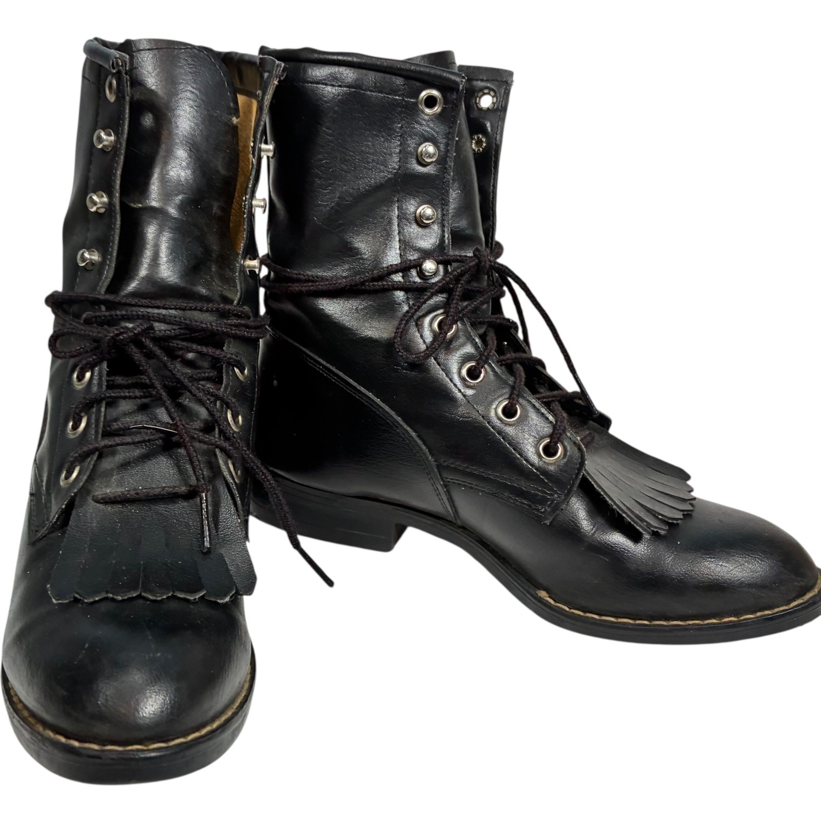 Bronco Boots Women's 53201 Black Faux Leather Lace-up Kiltie mid-calf 5.5D USA