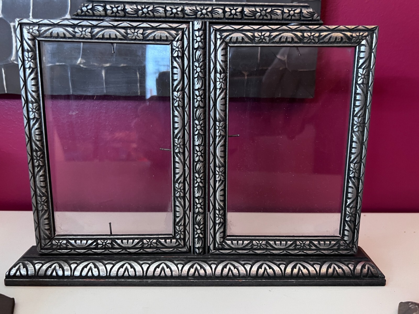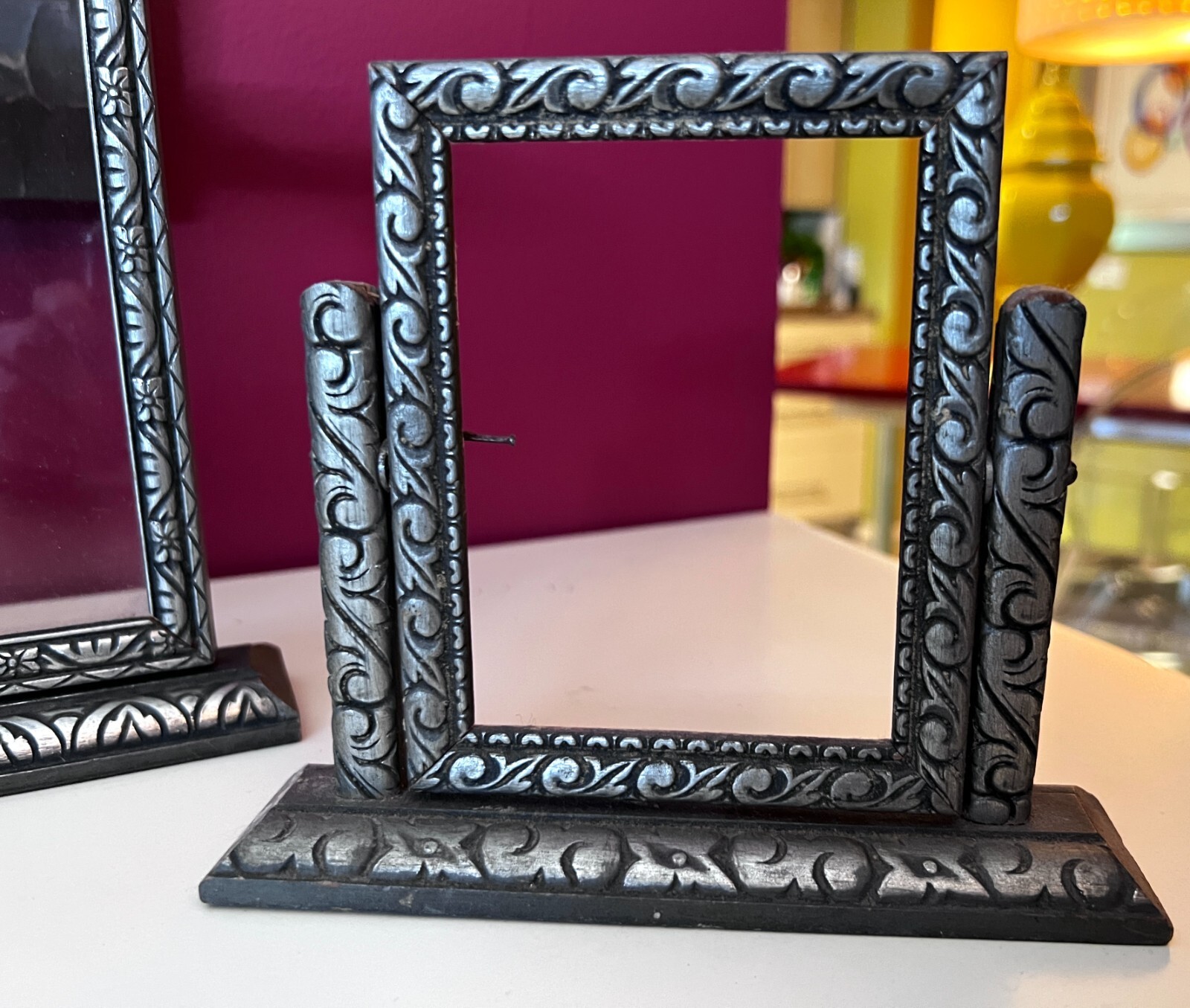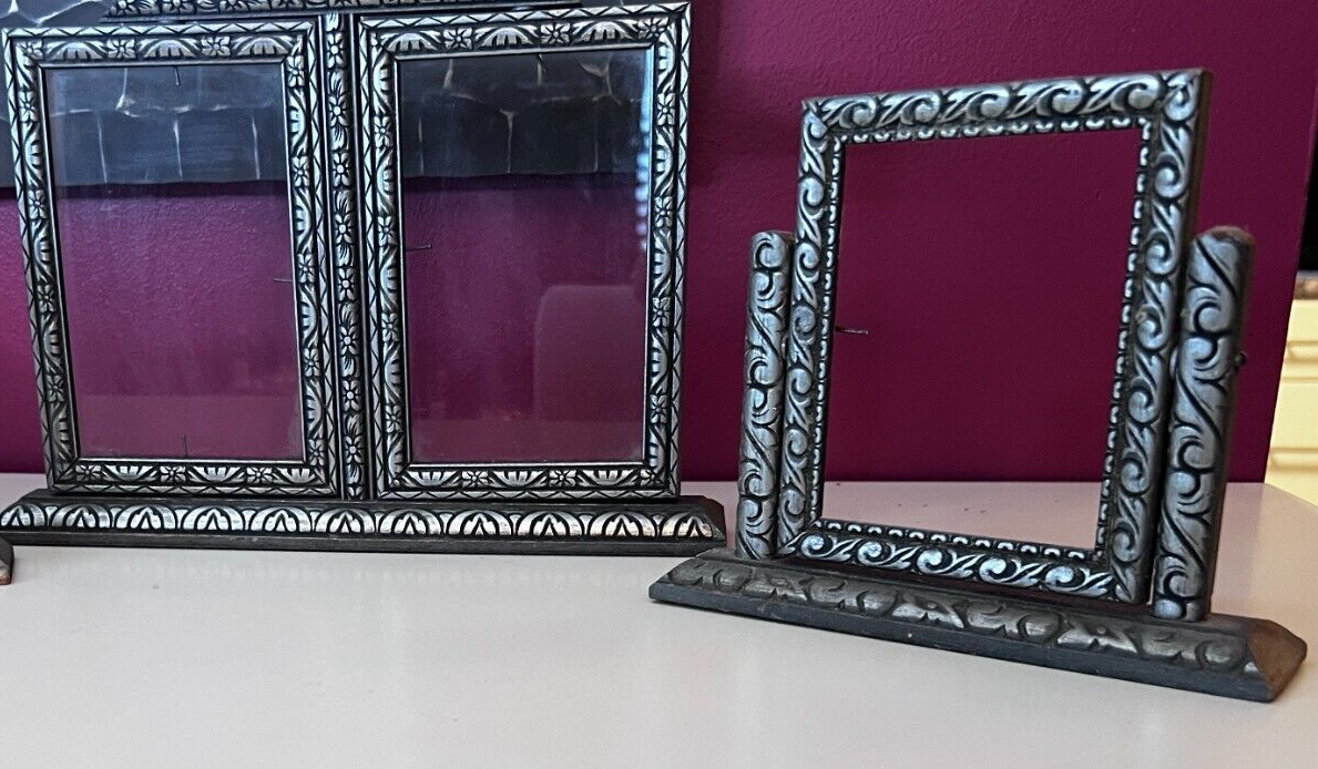 Mixed Lot 3 VTG Antique Art Deco Silver Painted Swivel Swing Wood Picture Frames