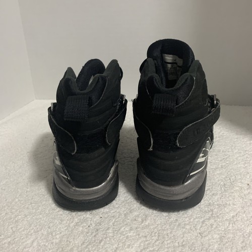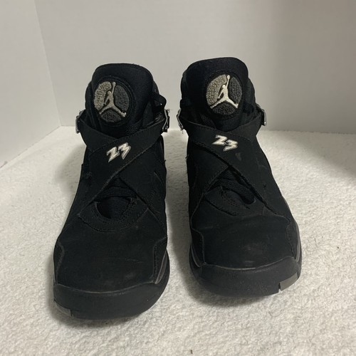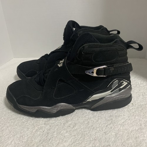 Up for sale is a stylish pair of Nike Air Jordan 8 Retro BG 'Chrome' sneakers. These sneakers are perfect for boys who want to look fashionable while playing sports or just hanging out. The sneakers feature a sleek black color with chrome accents, creating a retro look that is sure to turn heads.