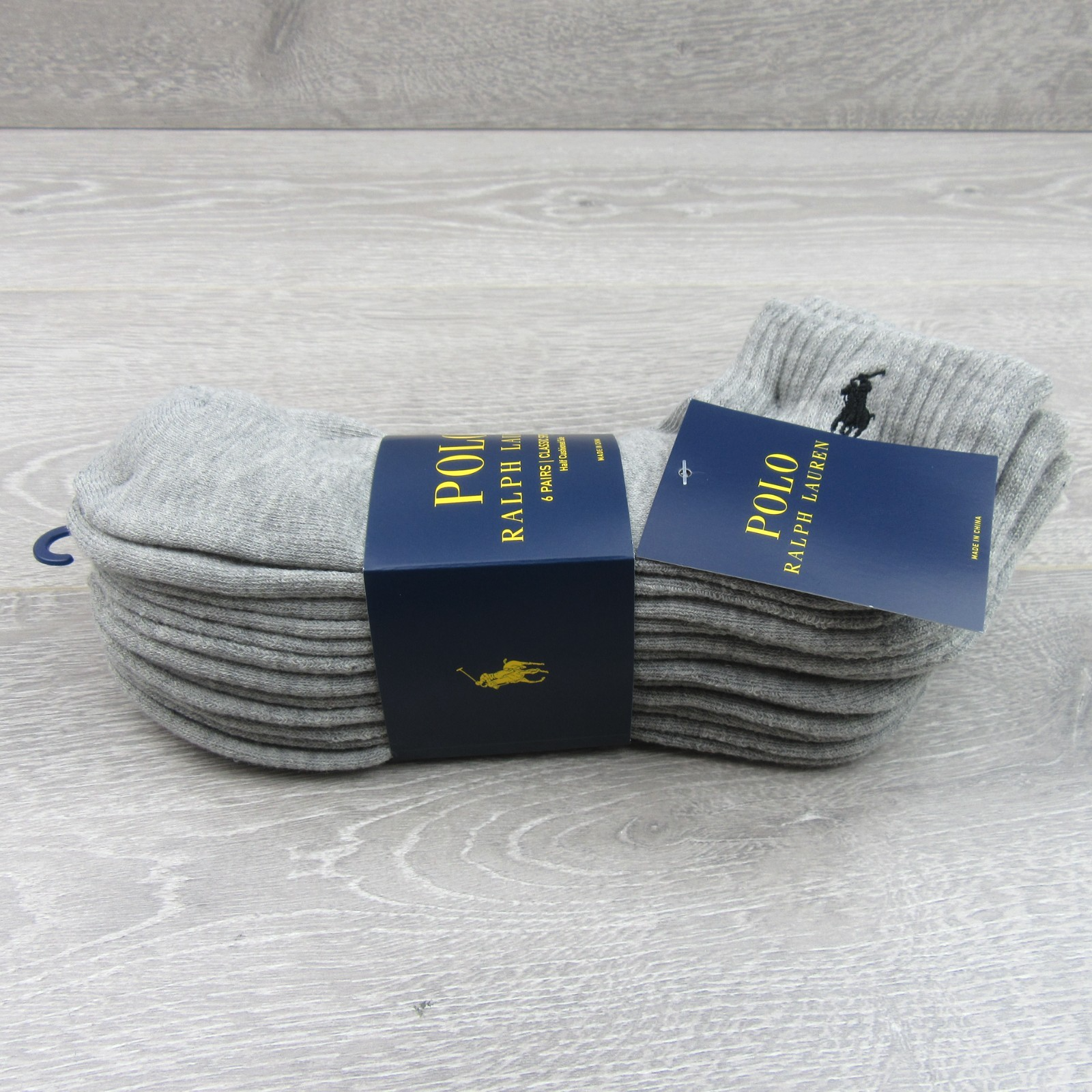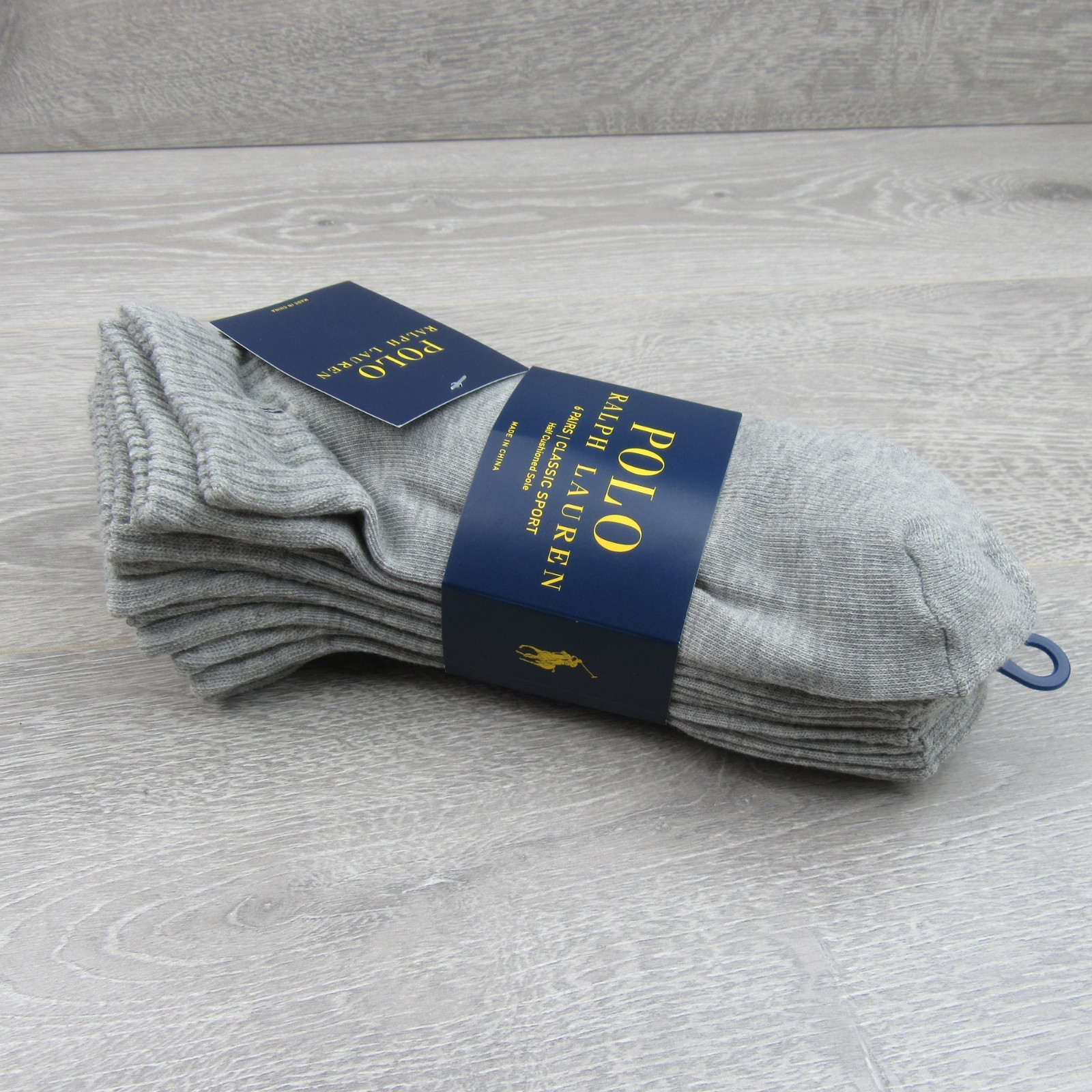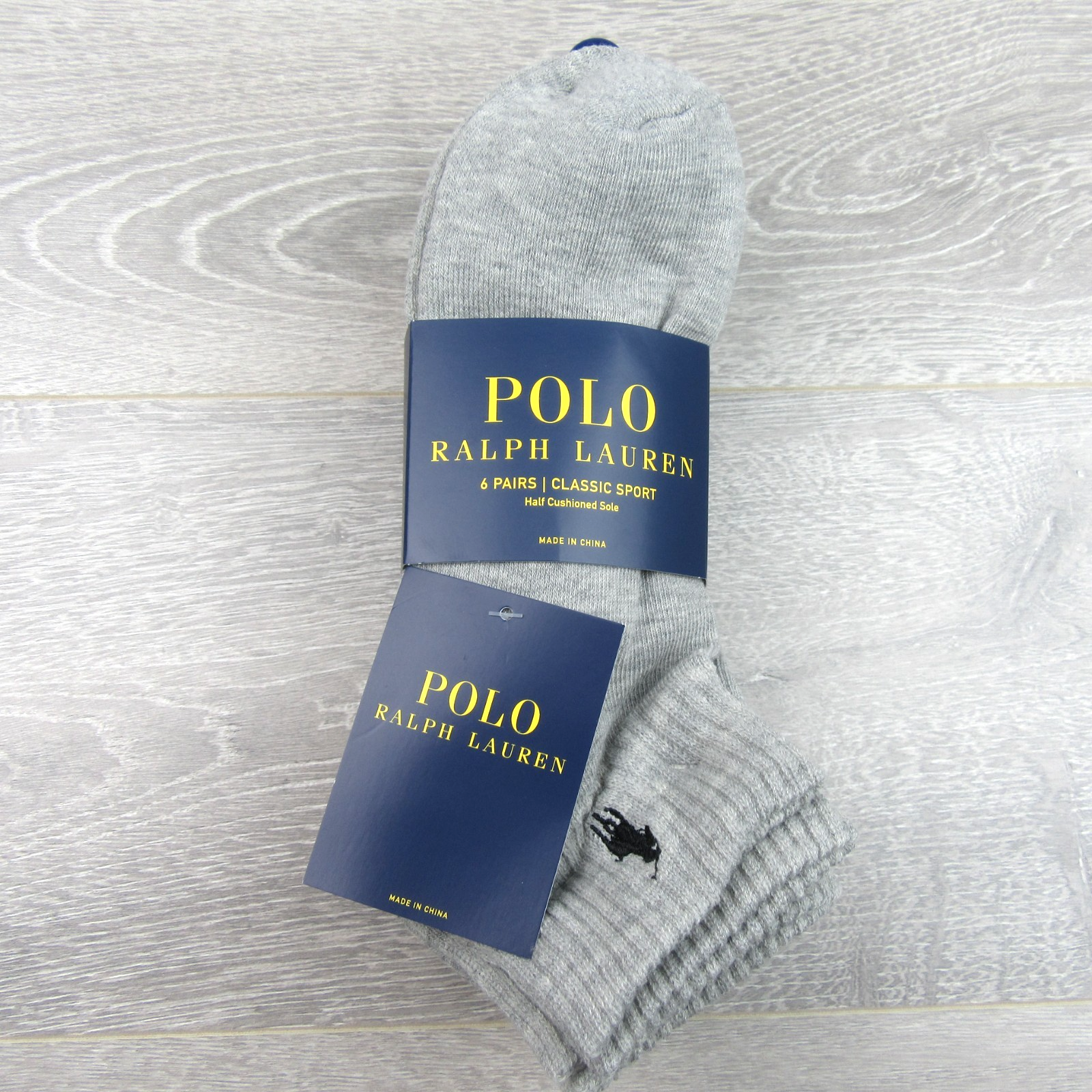 Polo Ralph Lauren Classic Sport Low Cut Socks Men's Size 6-13 Grey (6-Pack) NEW