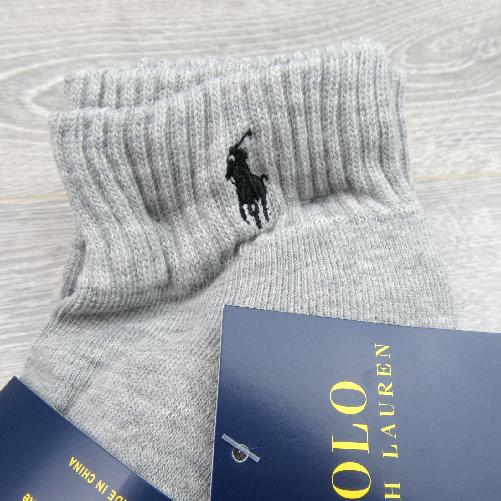 Polo Ralph Lauren Classic Sport Half Cushioned Sole Grey Low Cut Socks w/ Embroidered Blue Pony