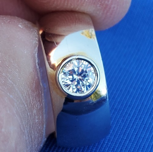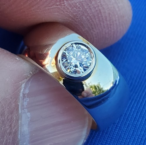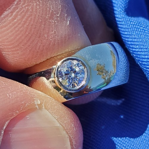 Earth mined Diamond Deco Engagement Ring Bezel set Chunky Dome 14K Gold Band
