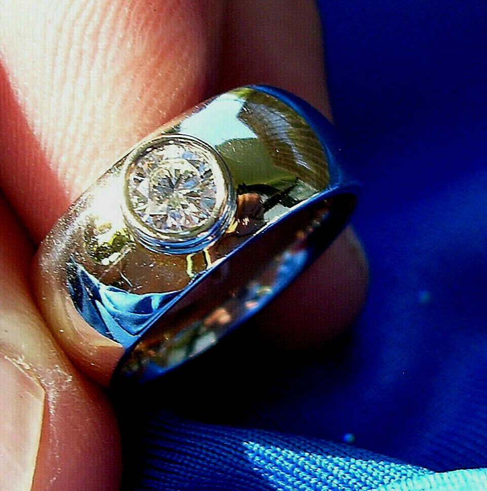 ELEGANT WIDE BAND DIAMOND SOLITAIRE.