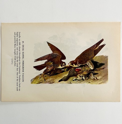 Peregrine Falcon Bird 1950 Lithograph Print Audubon Nature First Edition DWU14B