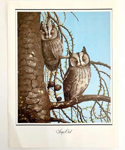 Scops Owl Resting Art Print Color Plate and 37 similar items