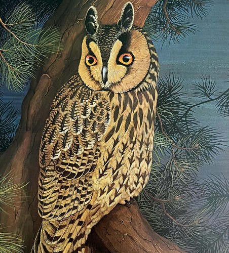 Long Eared Owl Art Print Color Plate Birds Of Prey Vintage Nature 1979 DWT11A