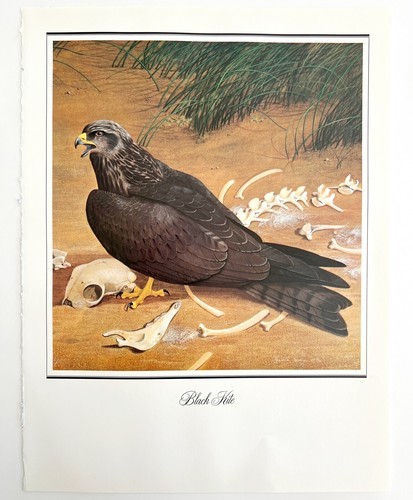 Black Kite Art Print Color Plate Birds Of Prey Vintage Nature 1979 DWT11C