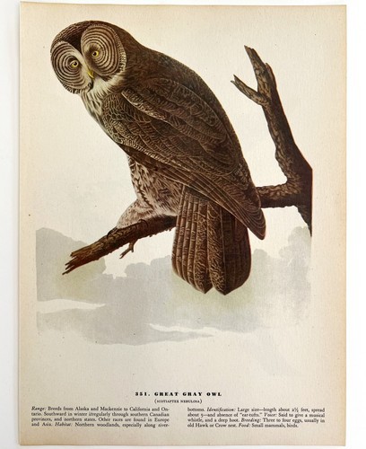 Great Gray Owl Bird 1946 Color Art Print and 37 similar items