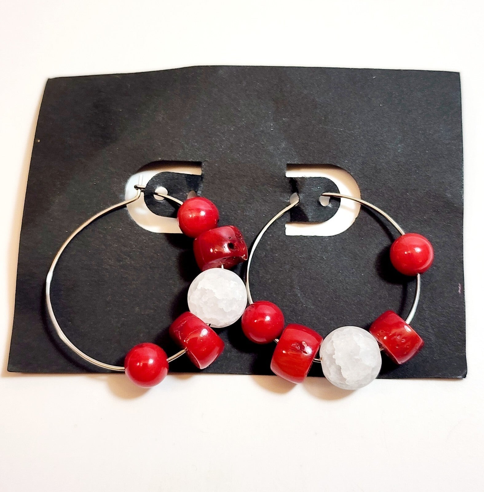Vintage Red White Loop Earrings Costume Handmade Beaded B66 Maine