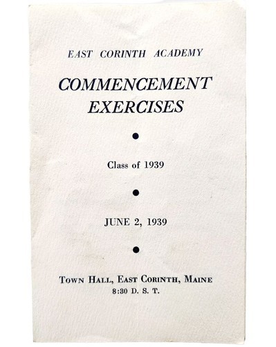 East Corinth Academy 1939 Maine Commencement Exercises Program Bi-Fold DWNN4