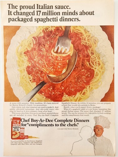 1966 Chef Boy-Ar-Dee Spaghetti Dinner Advertisement Box Mix Food Italian DWLL9