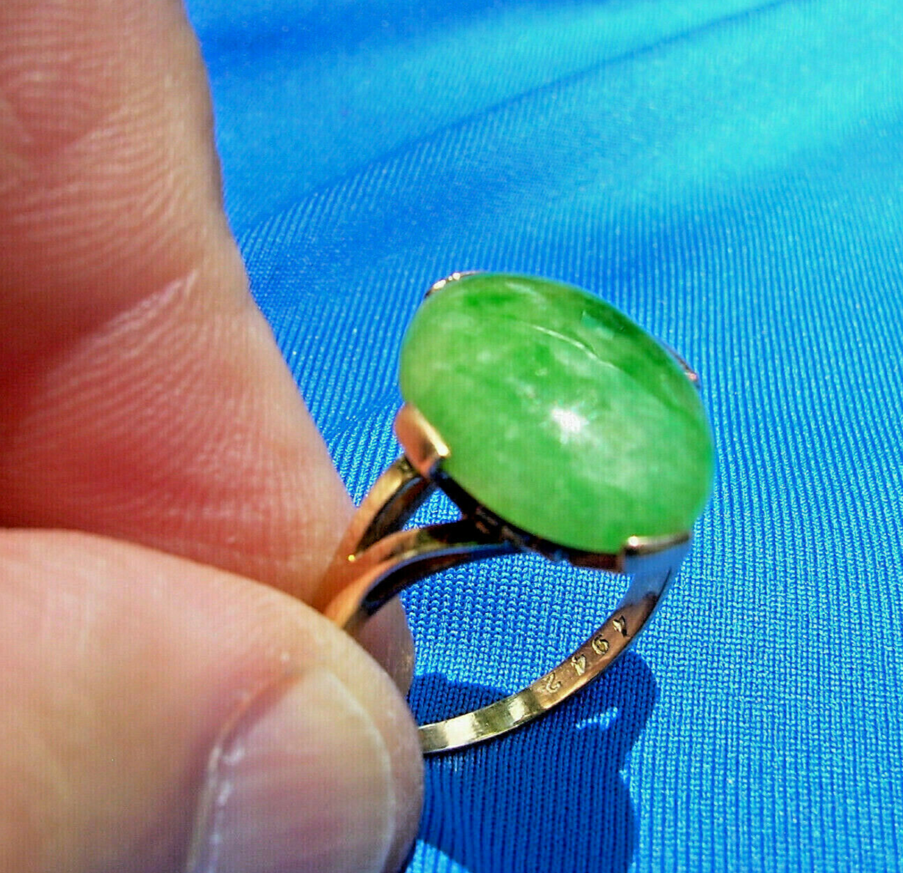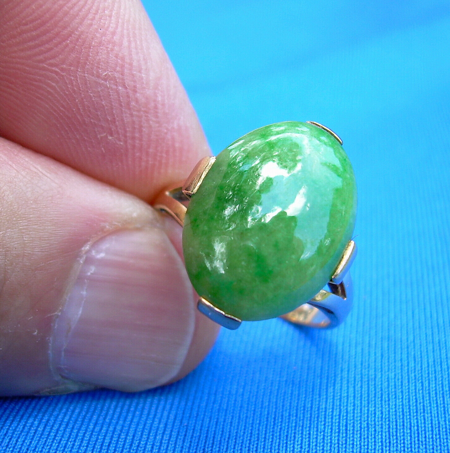 Earth mined Green Jadeite Jade Deco Engagement Ring 14k Gold Antique Solitaire