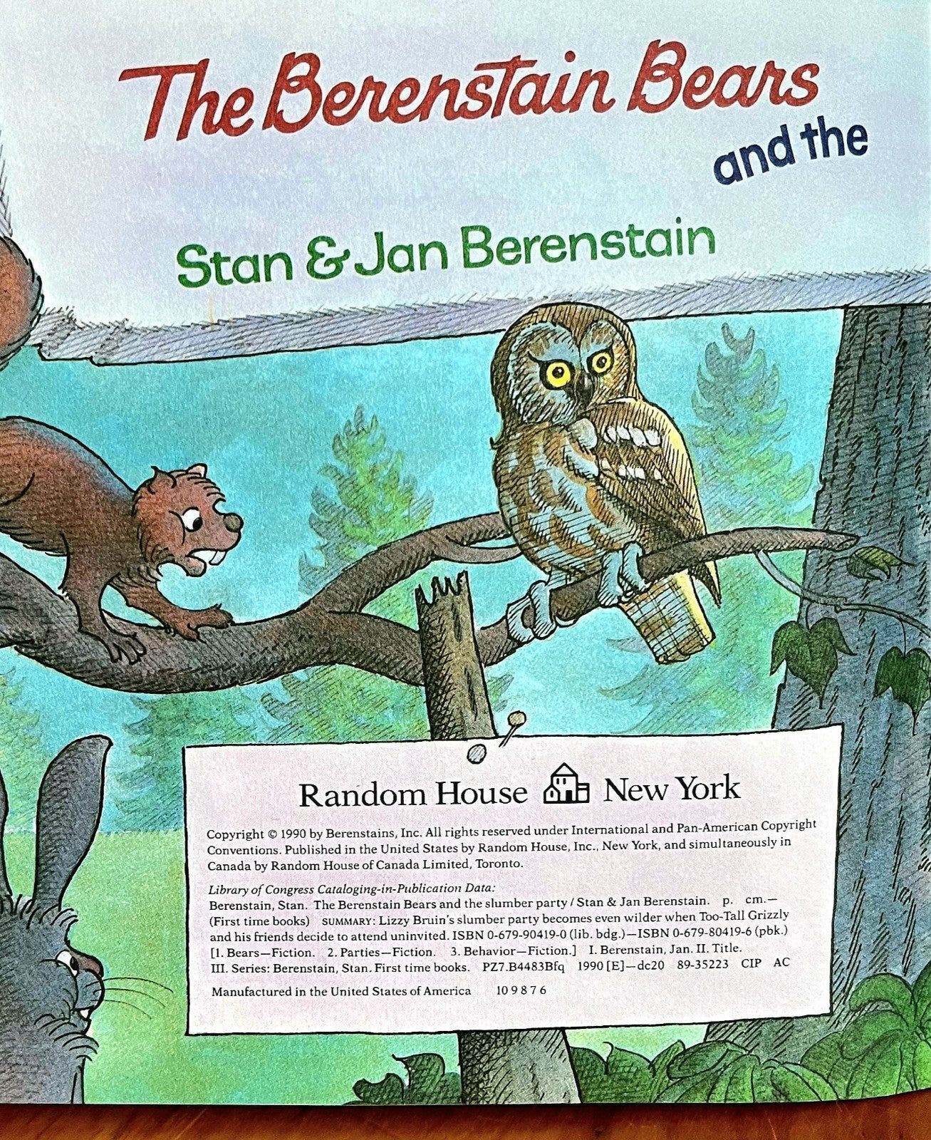 The Berenstain Bears and the Slumber Party Vintage Children's Book 1990
