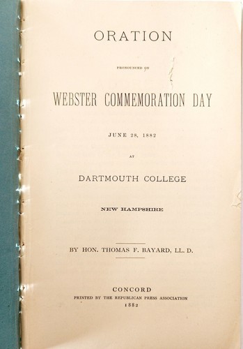 1882 Senator Bayard Dartmouth College Daniel Webster Oration Victorian PB E96