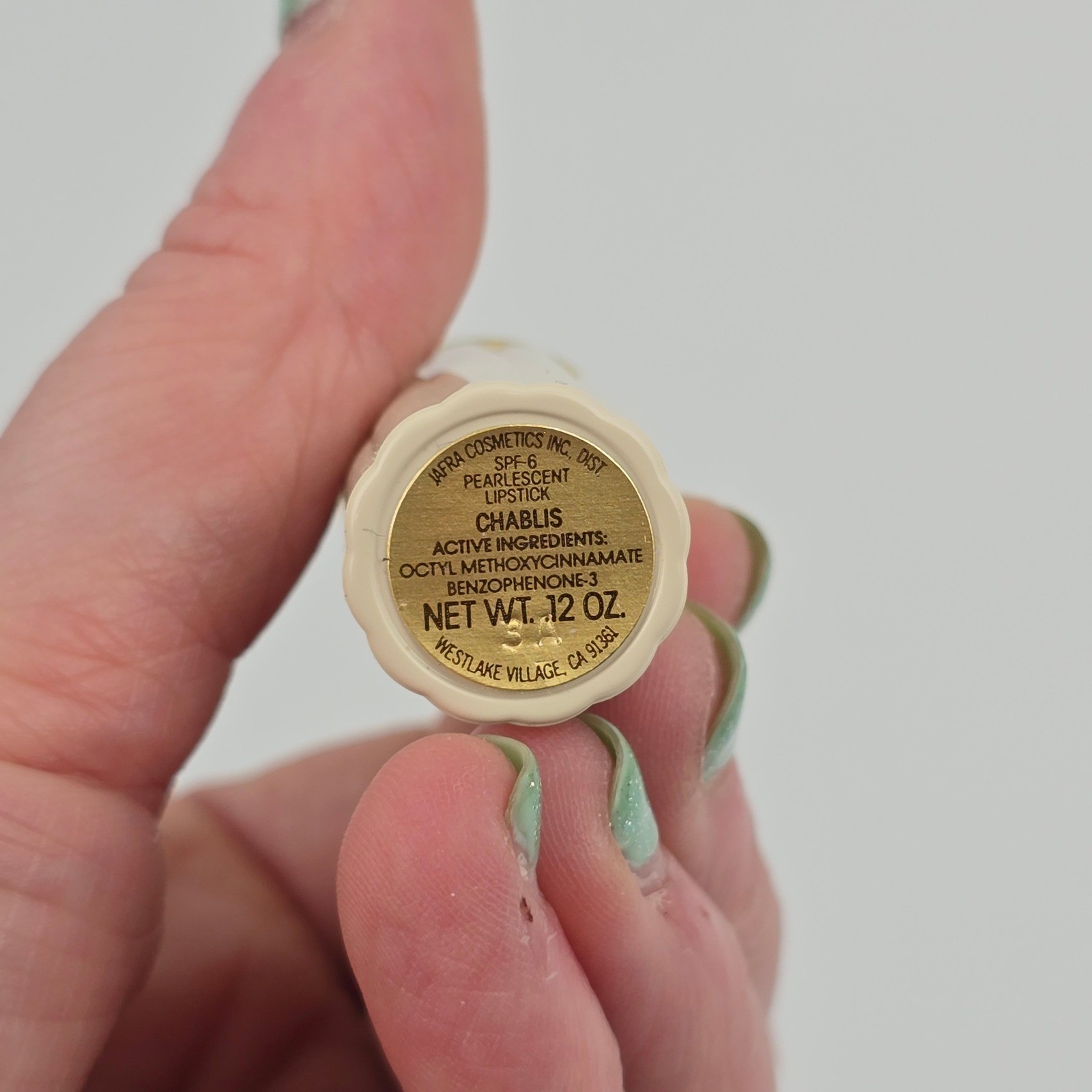 Keywords: Jafra, Lipstick, Pearl Scent, SPF 6, Moisturizing, Chablis, Vintage, Cosmetics, Makeup, Retro, 1990s, Collectible, Beauty, Lip Color, Fragrance Free