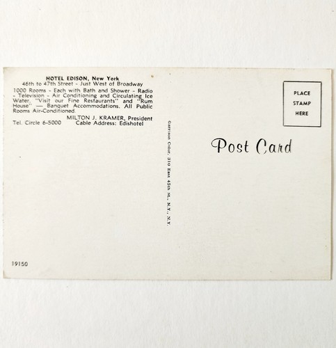 NYC Hotel Edison New York City c1940-50s New York Milton Kramer Garrison DWS5D