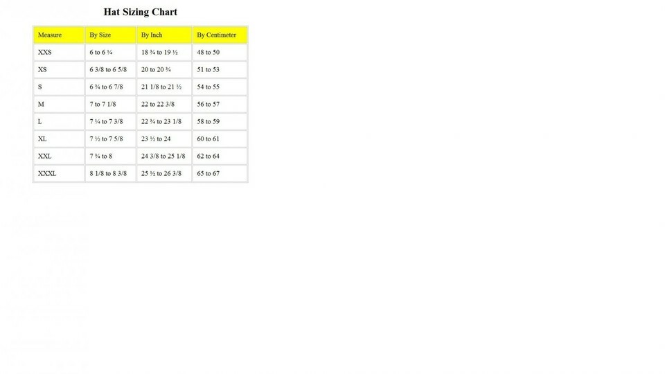 To measure your size, wrap a measuring tape your head above your ears and eyebrows where your hat would normally sit.