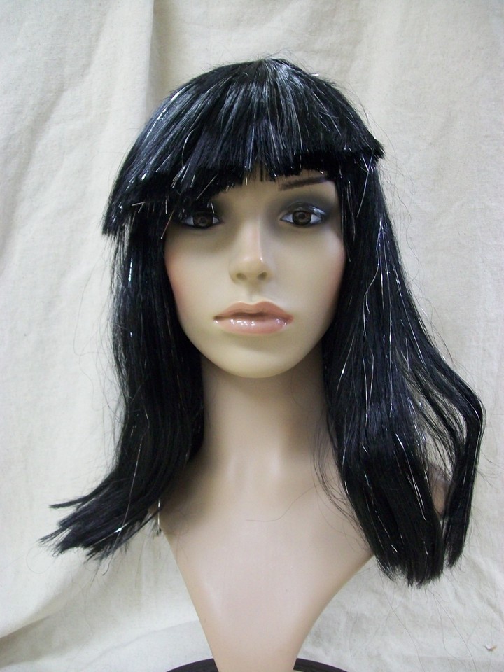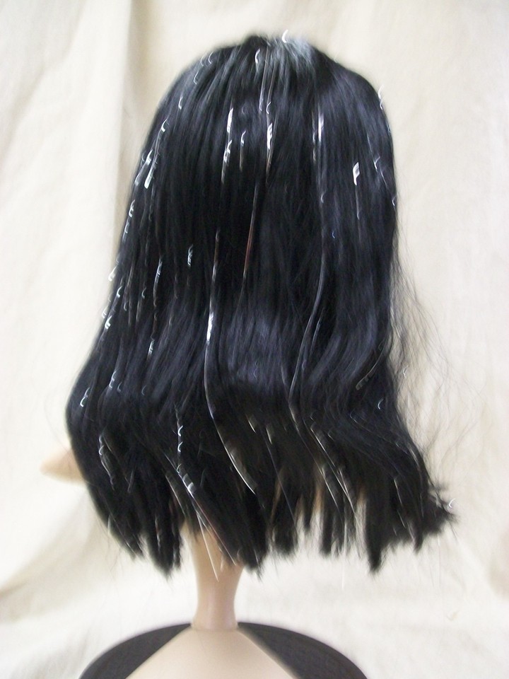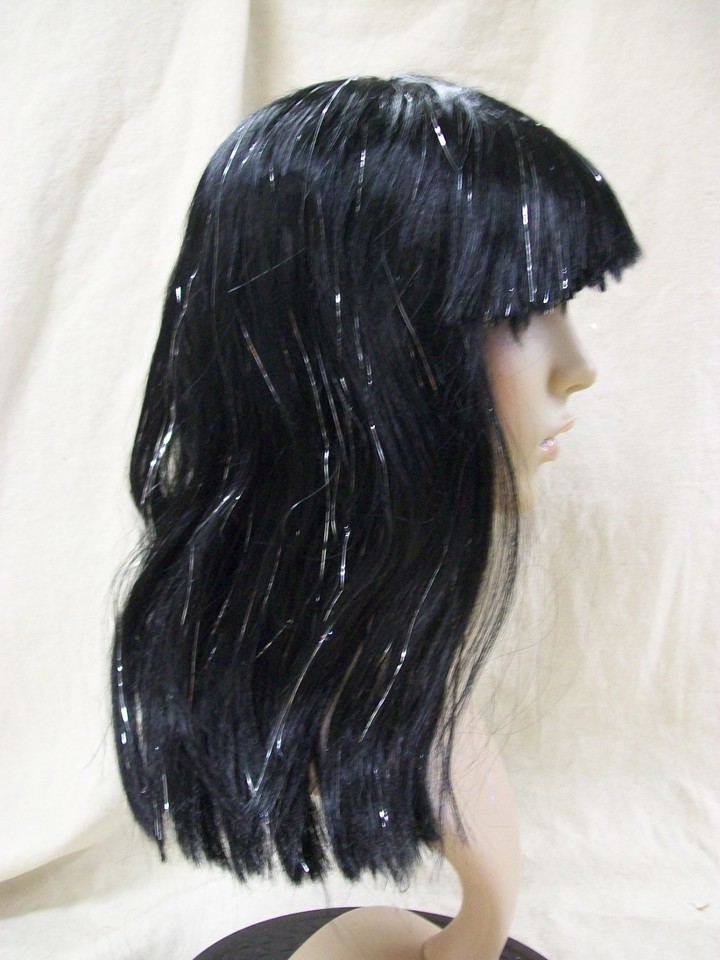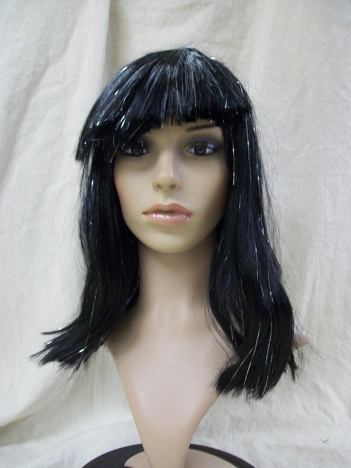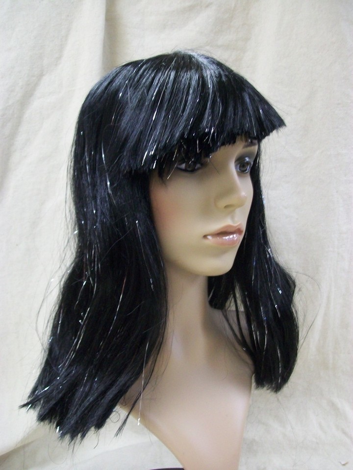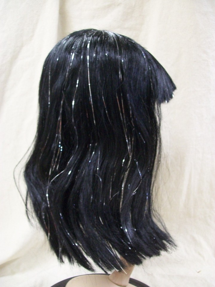 Black Silver Glimmer Glam Wig Metallic Tinsel Shimmer Club Rave Party Rockstar