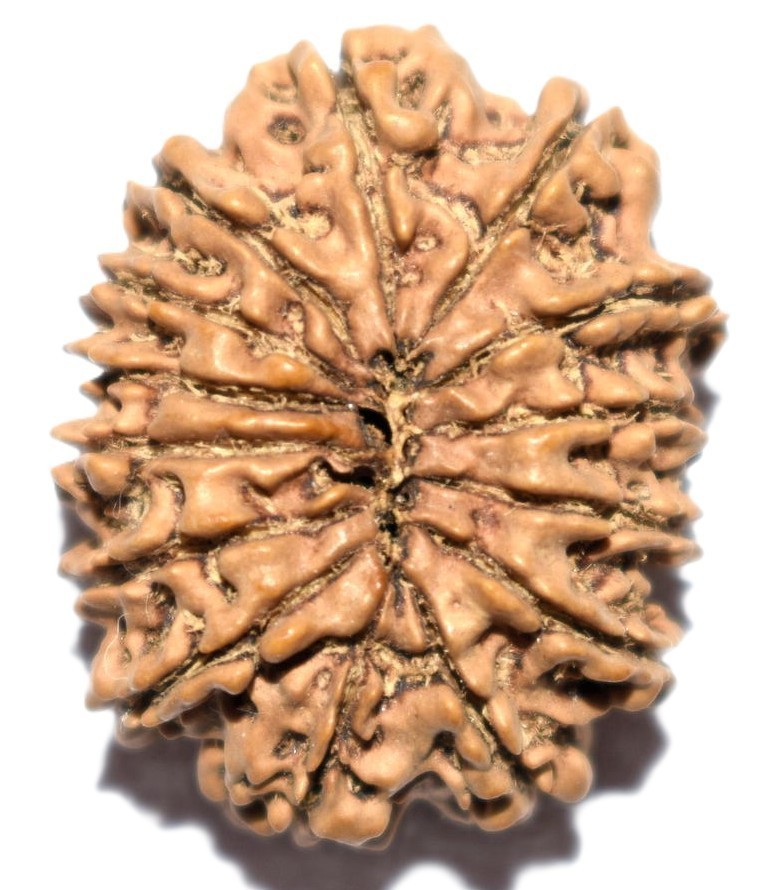 14 Mukhi Rudraksha is found most rarely and it pleases Lord Shiva to give the wearer His company. It is the most precious divine thing Deva Mani. It awakens the sixth sense organ by which the wearer foresees the future happenings. Its wearer never fails in his decisions. Its wearer gets rid of all the calamities, miseries, worries. It provides the wearer safety and riches. It is a very powerful antedote for Saturn miseries and provides miraculous cures to several ailments. It is recommended to be worn on chest as a necklace, on forehead on third eye region or on right arm. It helps in achieving moksha (salvation) from the world which is the essence of human life. The wearer of 14 mukhi rudraksha becomes divine and becomes dear to Lord Shiva.
