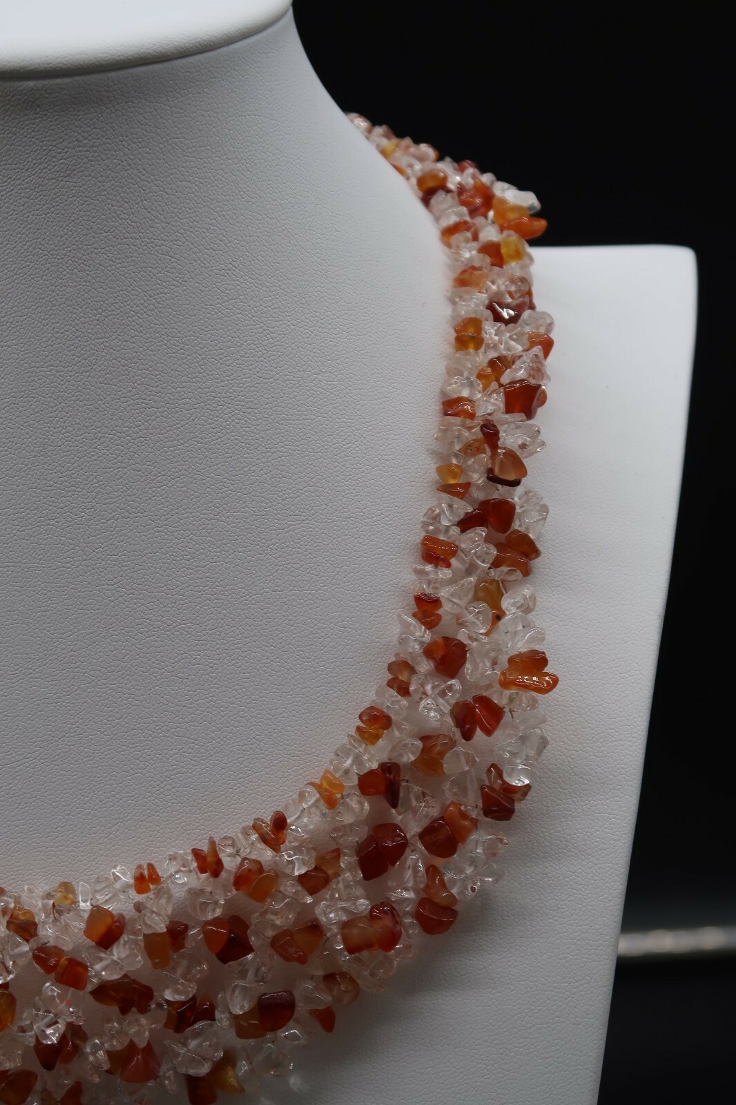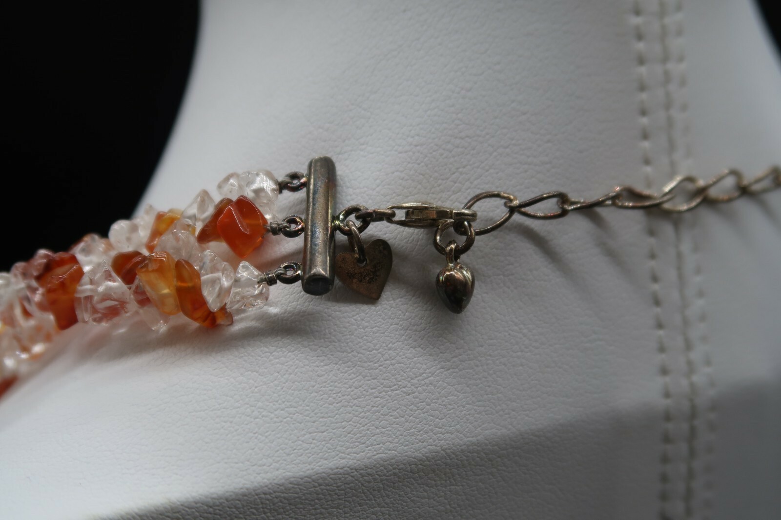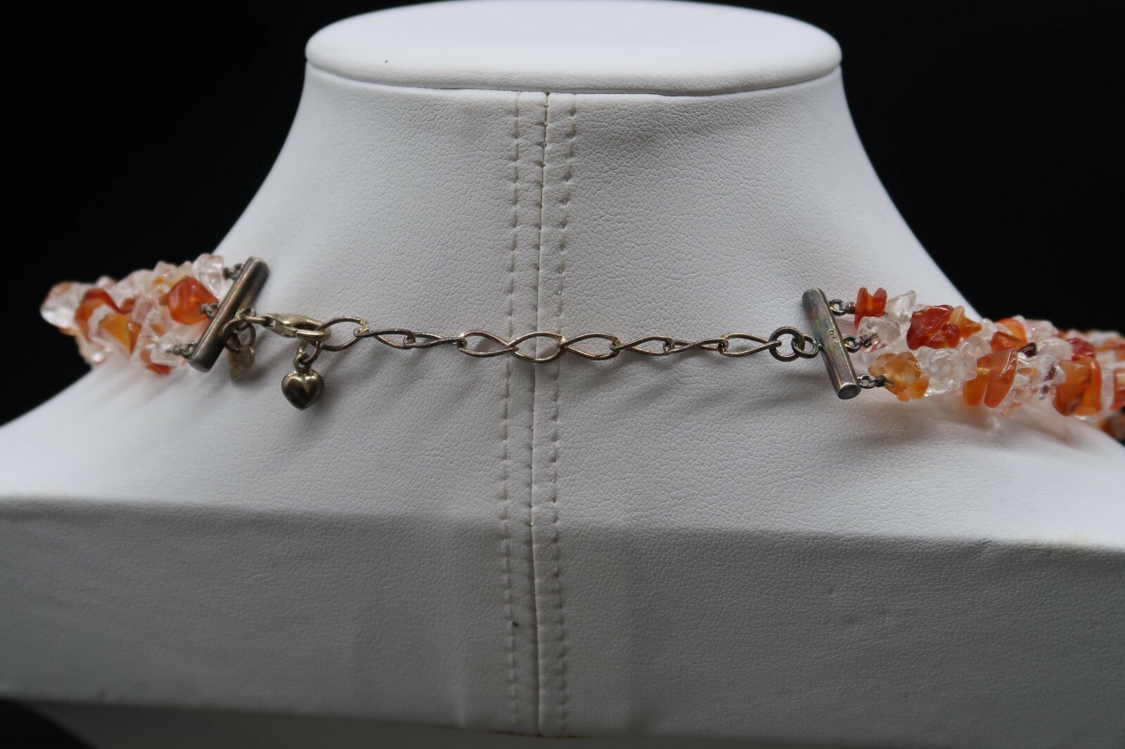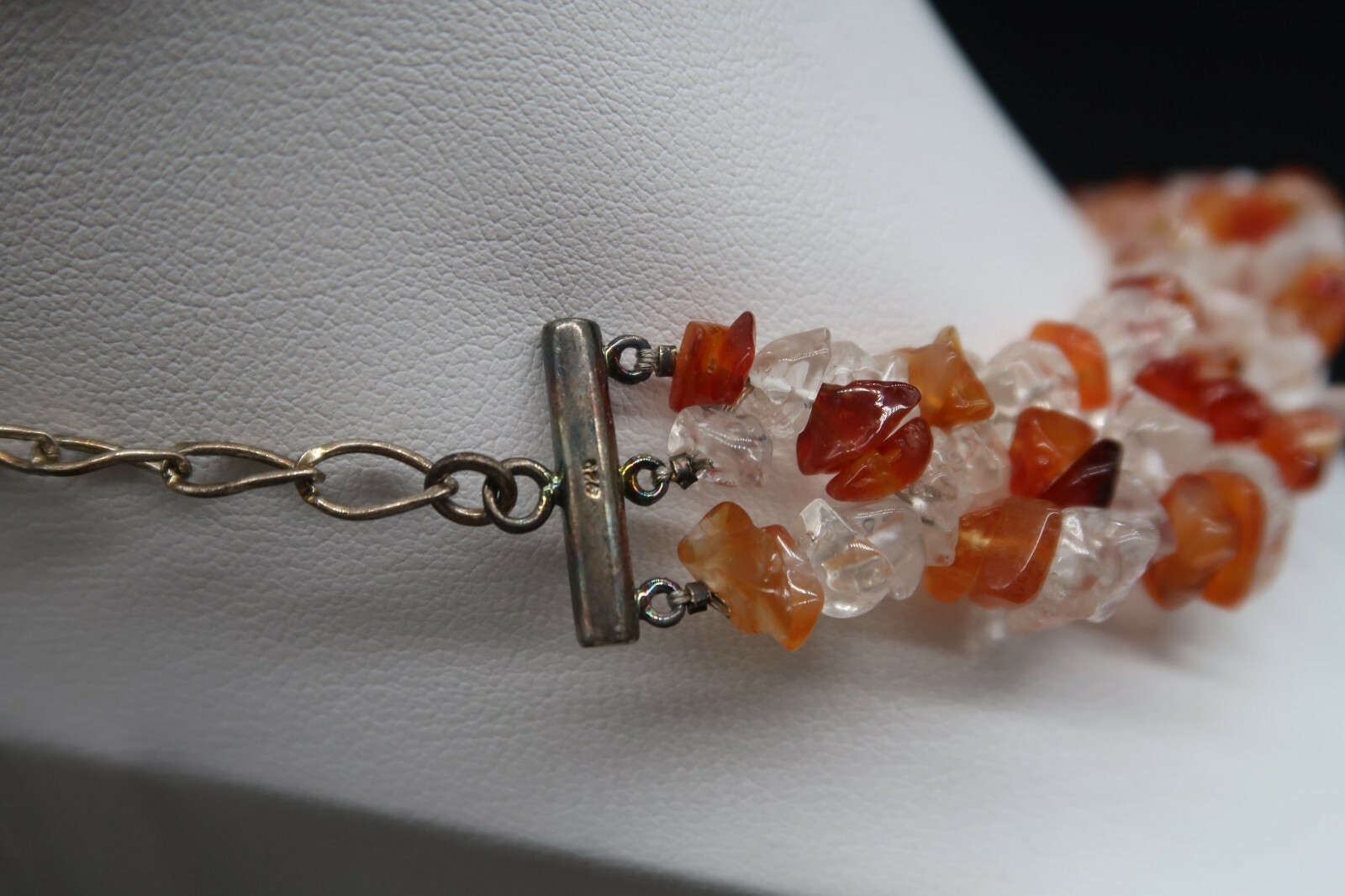 Vtg Multi-Strand Carnelian & Clear Quartz Stone Sterling Silver Necklace Pretty