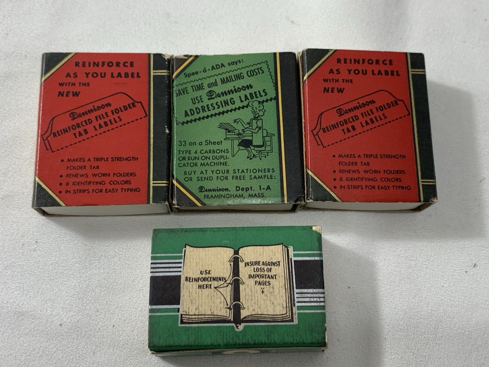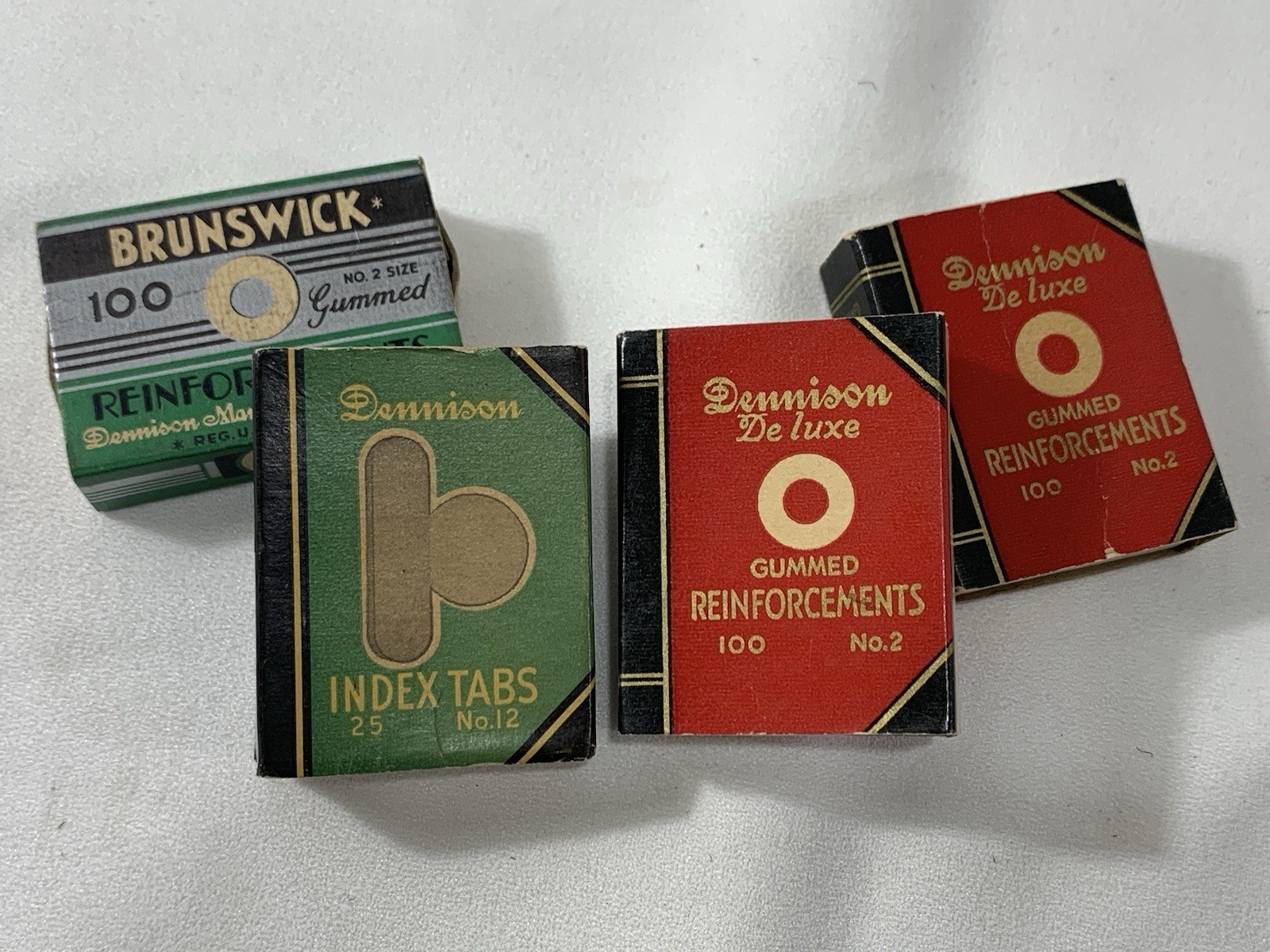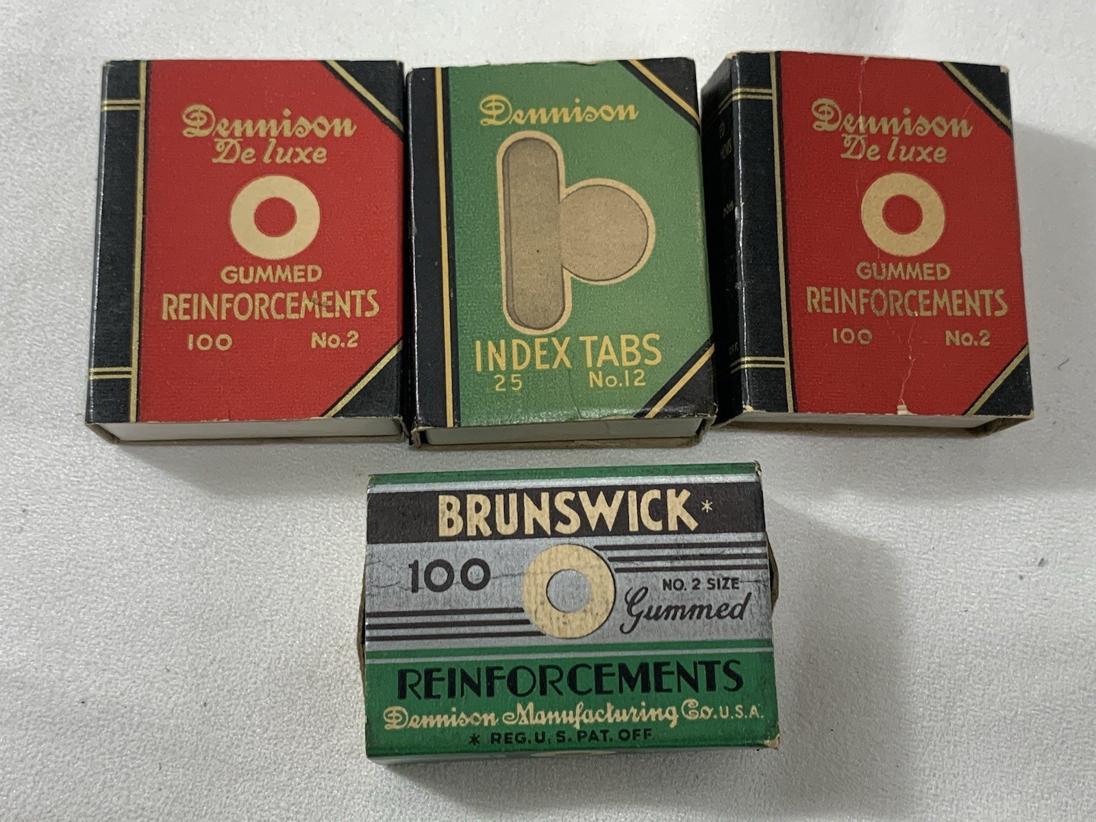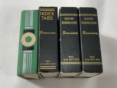 These are some good ole index tabs from back in the day when things were made to last longer than post it notes! Has 22 index tabs! So while old they are new old stock. Box is in decent shape, not perfect but definitely not bad either. PLUS, you will get 3 other boxes of gummed reinforcements! All oldies, but goodies!