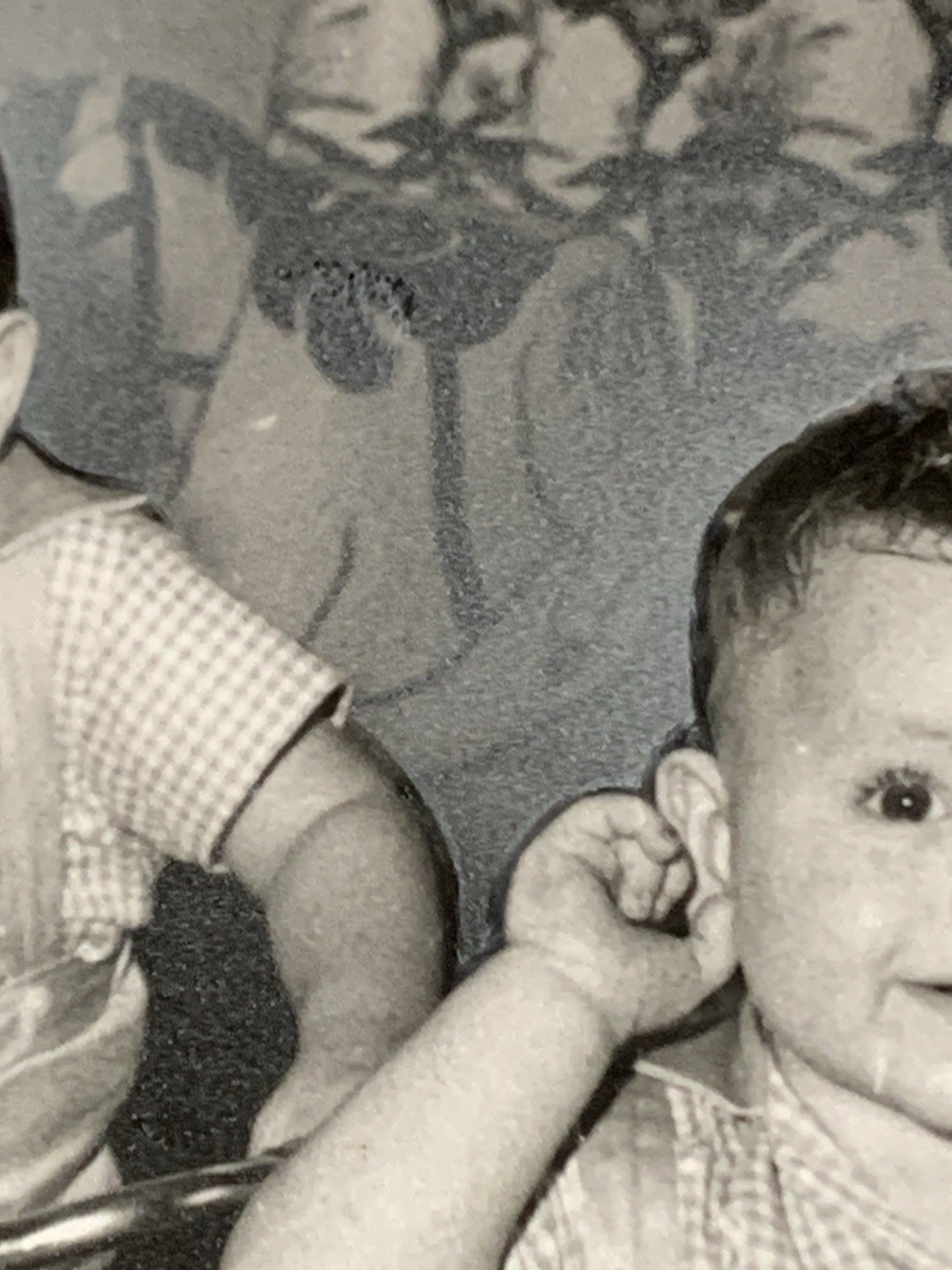 This photo, looks as if it was airbrushed with some white background on the upper portions of the image to allow for more separation of their bodies and the busy background. So by old school, rubyliths were cut to protect the image not being airbrushed for those from the old days in printing!