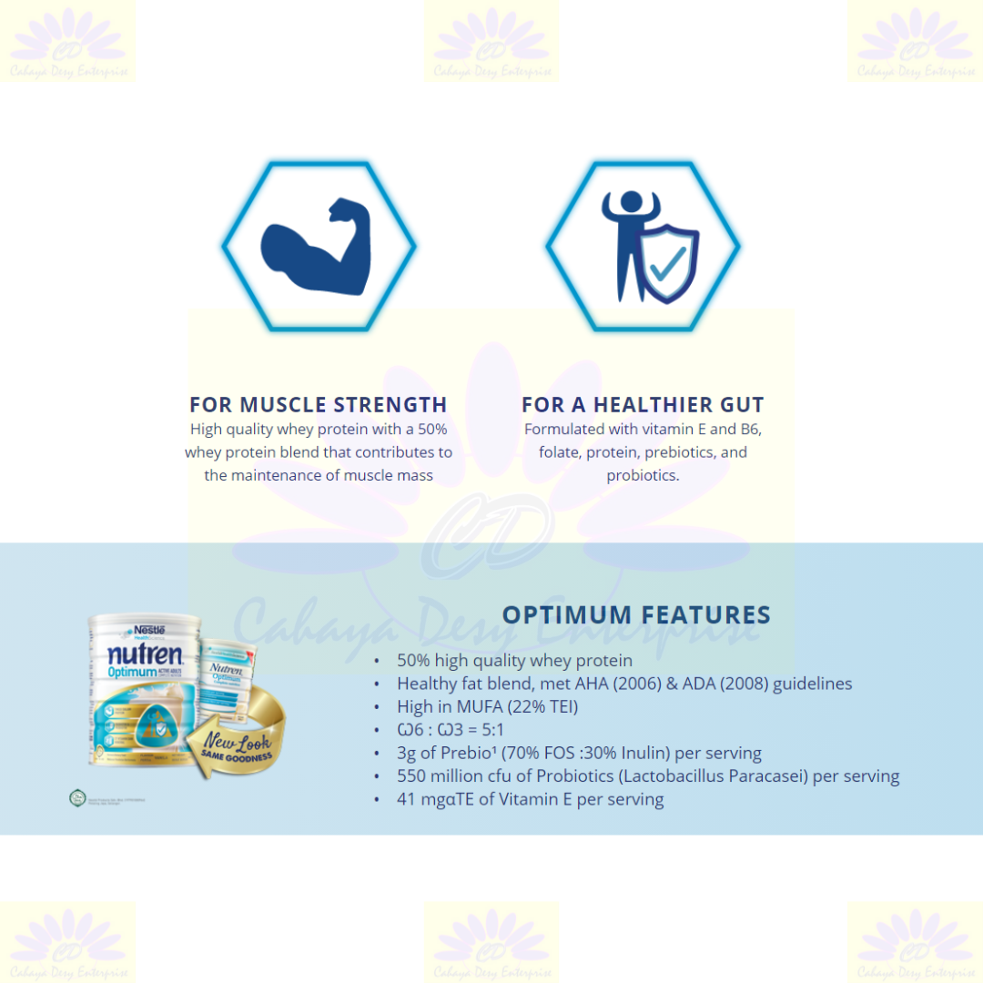 NUTREN OPTIMUM is scientifically developed as a complete and balanced nutritional supplement to regain strength in as early as 6 weeks. It also helps to enhance your body natural defence and support recovery during illness.