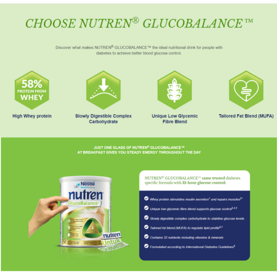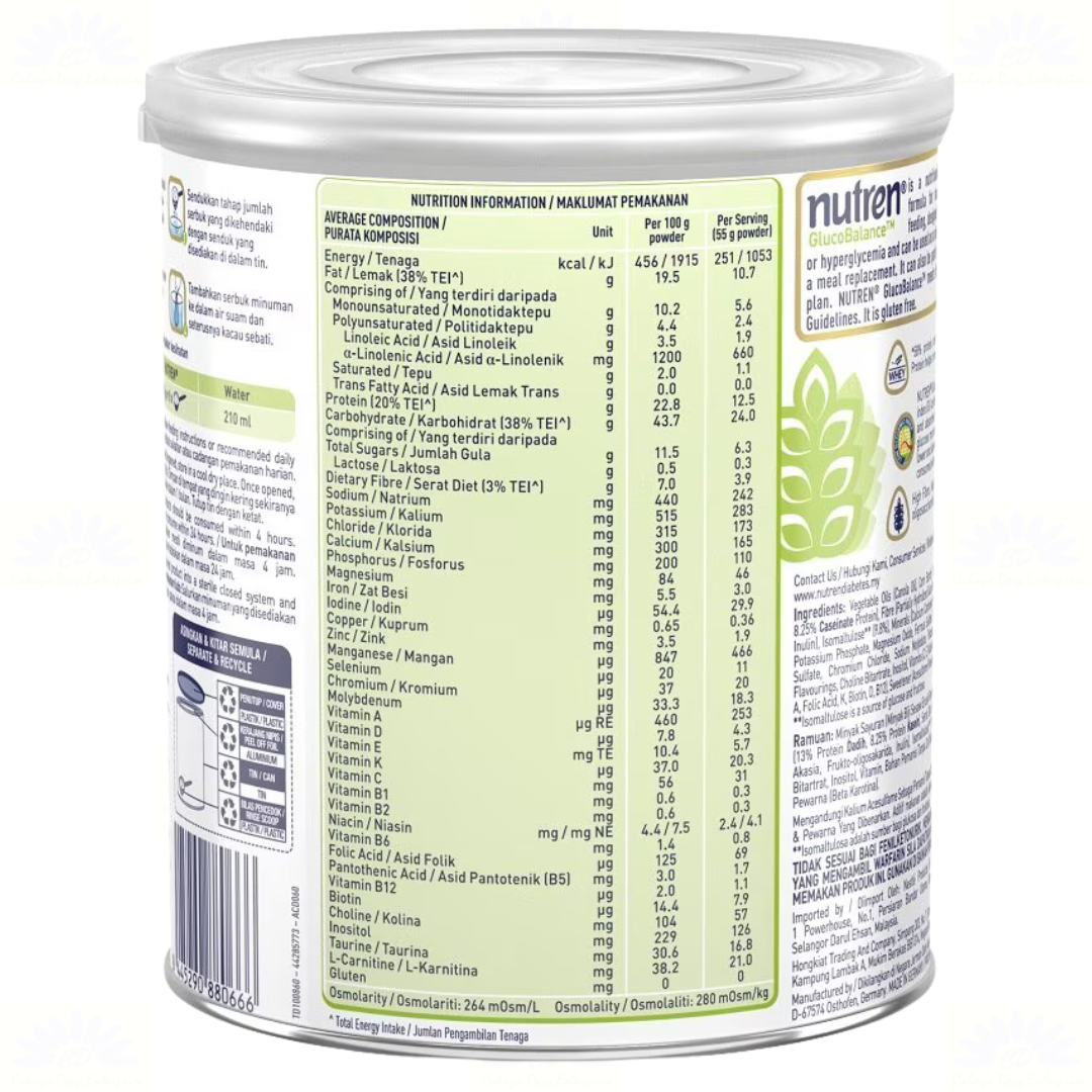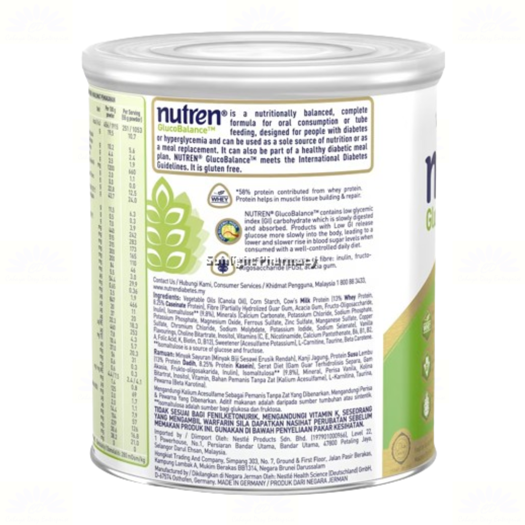 Fuel balanced health with this 2-can pack of Nutren GlucoBalance Vanilla 800 g. Designed for people managing diabetes or glucose intolerance, this complete formula offers low glycemic impact and high nutritional value?ideal as a meal replacement or for everyday wellness. Helps manage blood sugar ? Features slowly digestible carbohydrates and a fibre blend to stabilize glucose response. High-quality protein support ? Offers 12.5 g protein per serving (? 58% from whey) for maintaining muscle and metabolic health. Free from sugar types ? Does not include sucrose, fructose, or lactose; vanilla flavor makes it pleasant to consume. Use under medical supervision if you are pregnant, breastfeeding, or have medical conditions affecting kidneys, liver, or metabolic disorders. Store in a cool, dry p