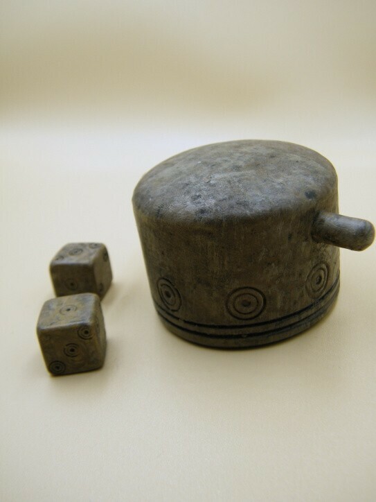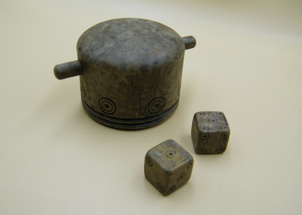 Roman dice set. Two dices and a shaker - London Museum version - resin replica