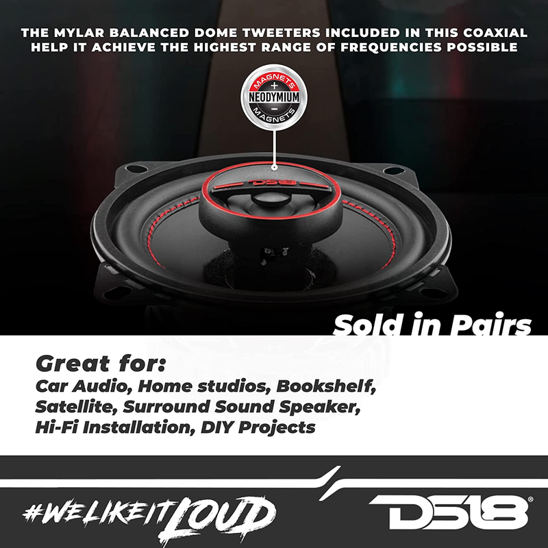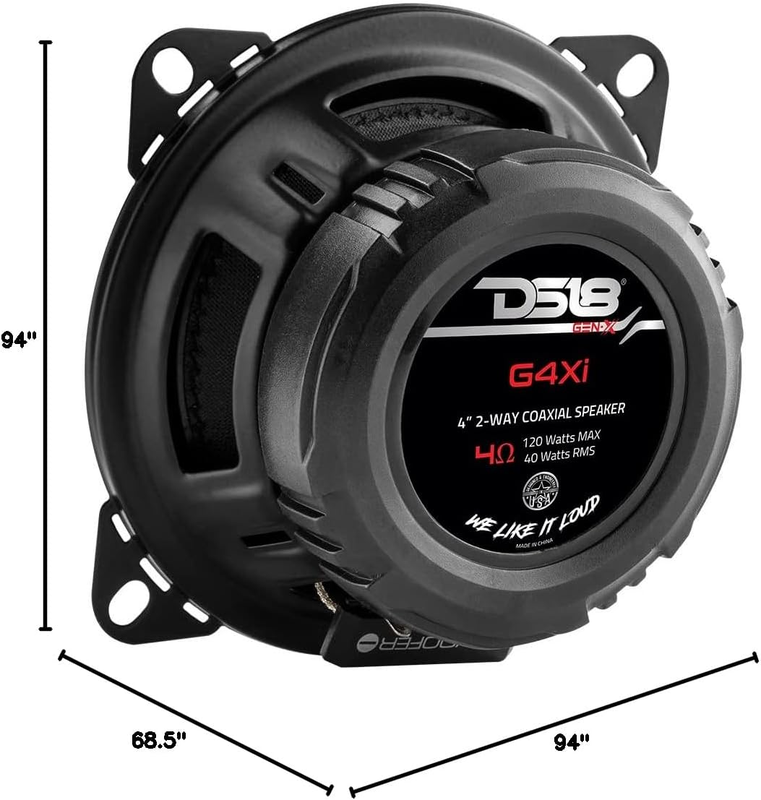 G4Xi GEN-X 4" 2-Way Coaxial Speakers 120 Watts Max Power 4-Ohm with Mylar