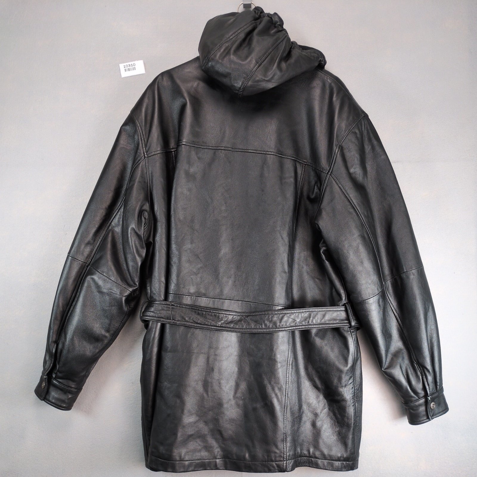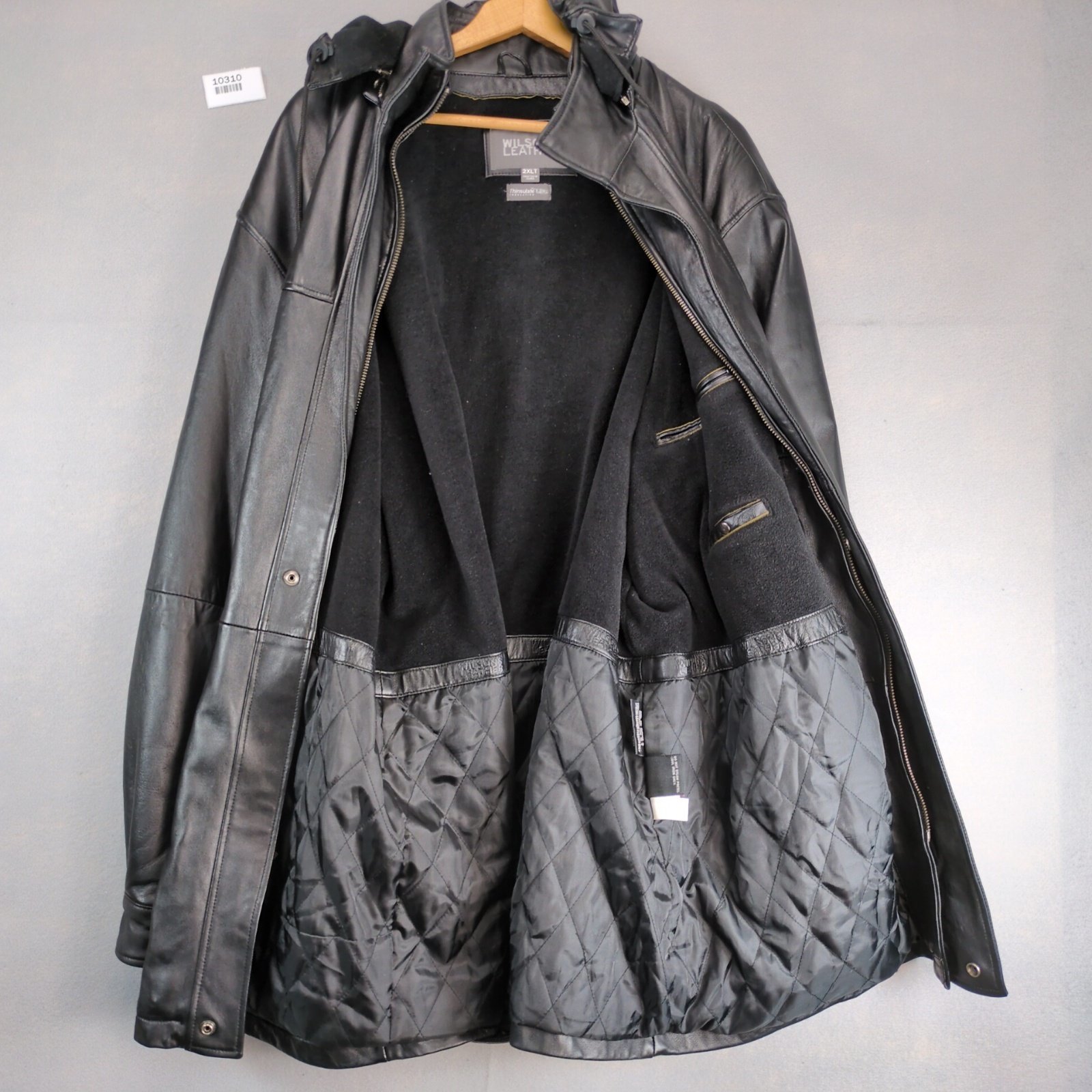 Wilsons Long Black Leather Coat Men's 2XLT Thinsulate Removable Hood Belt Zipper