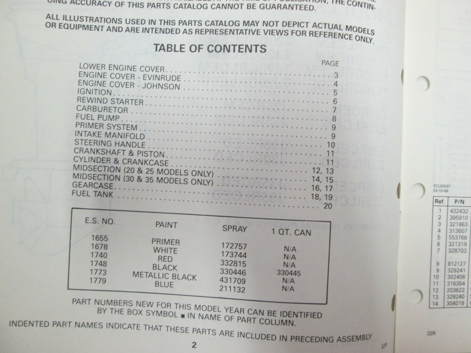 Catalogo Manuale Parti OMC Johnson Evinrude Modelli 30 35 FABBRICA OEM