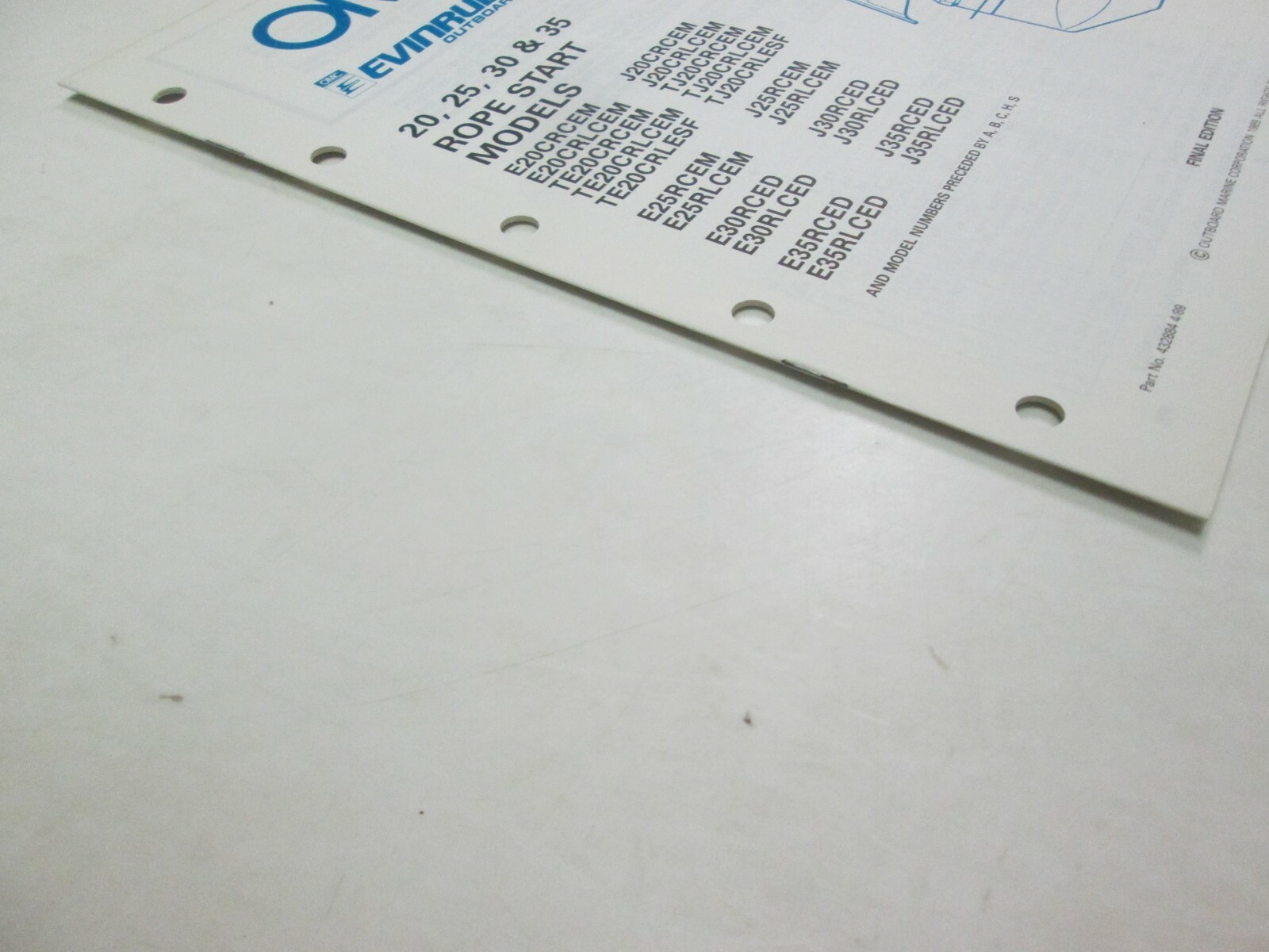 1990 OMC JOHNSON EVINRUDE 20 25 30 35 Modelli di avvio della corda Manuale del catalogo