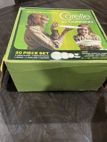 Keywords: Corelle Livingware, 20 Piece Set, Spring Blossom Green, Vintage Dinnerware, Retro Kitchen, Plates Bowls Cups Saucers, Dish Set, Kitchenware, Collectible, Mid Century, Dinner Set, Corelle Set