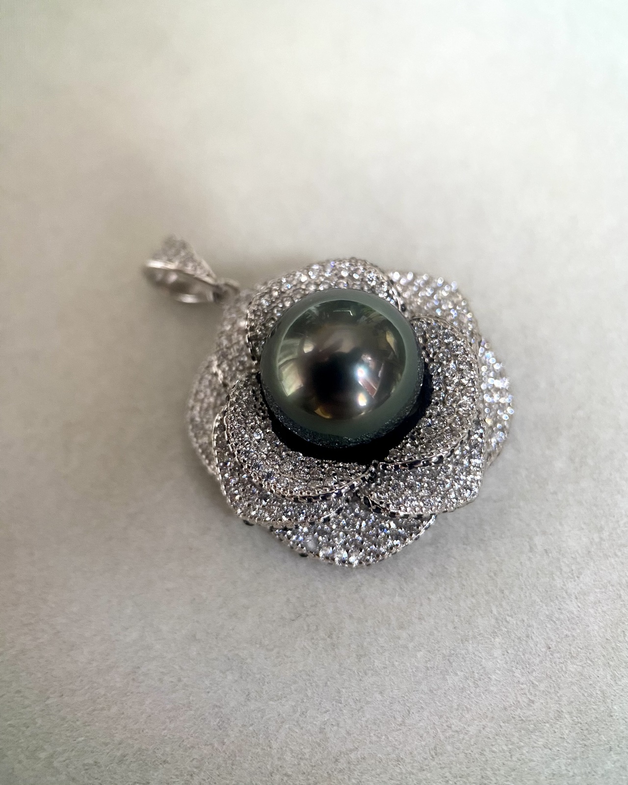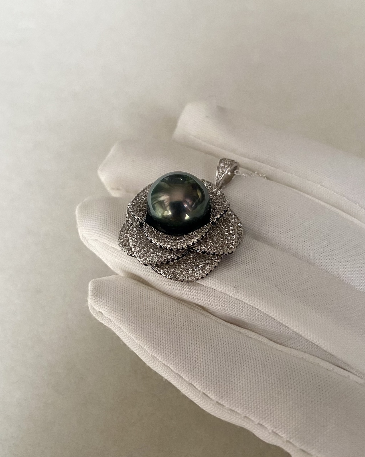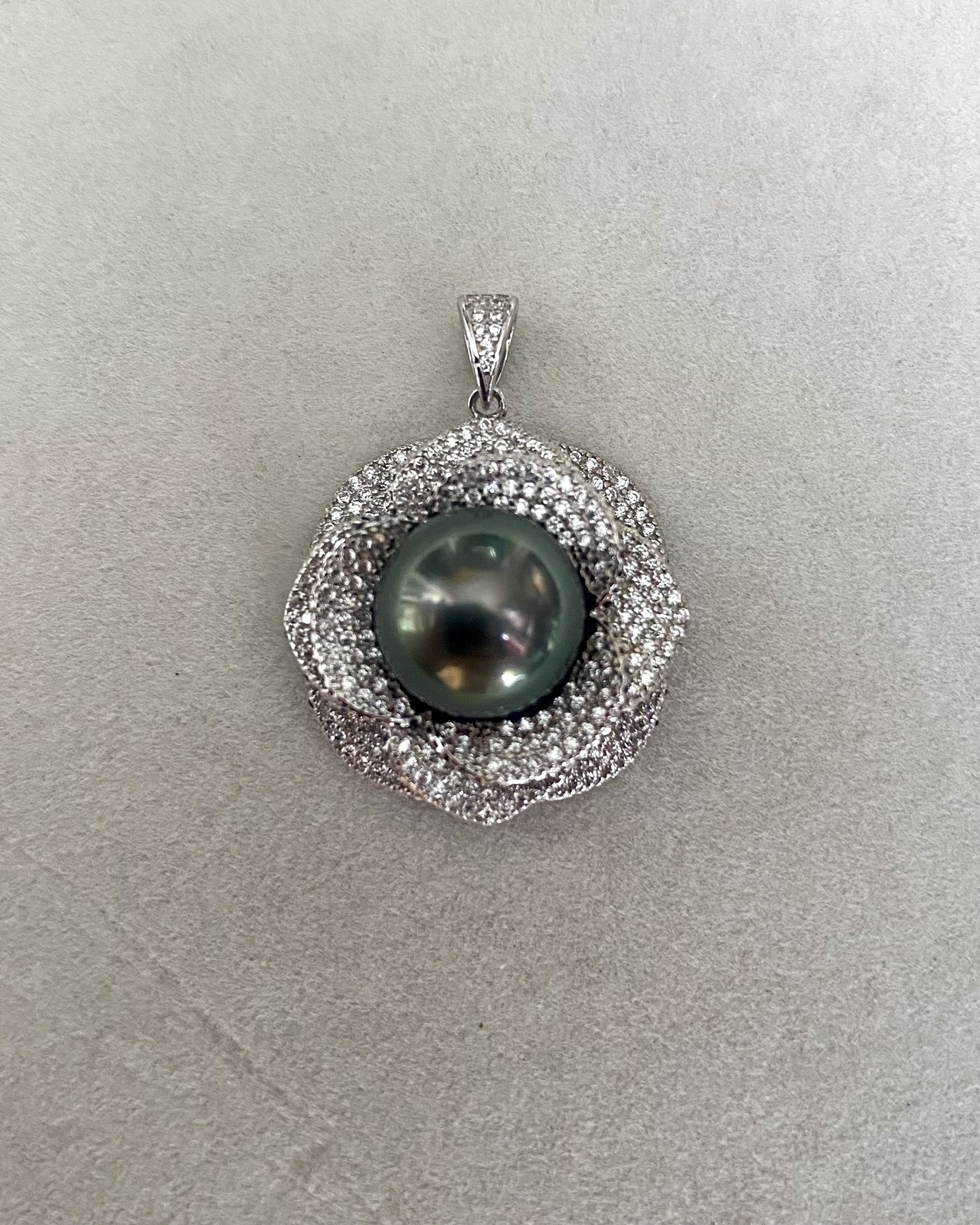 11mm Tahitian Obsidian Green South Sea Pearl Pendant Piaget Rose-Inspired Petals