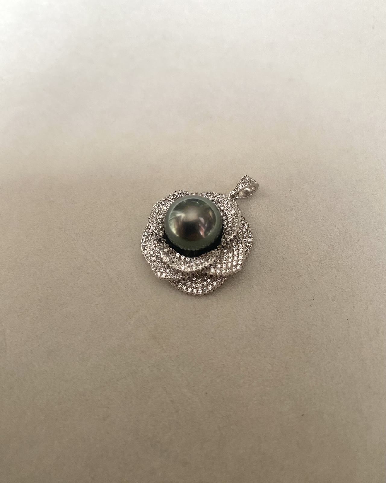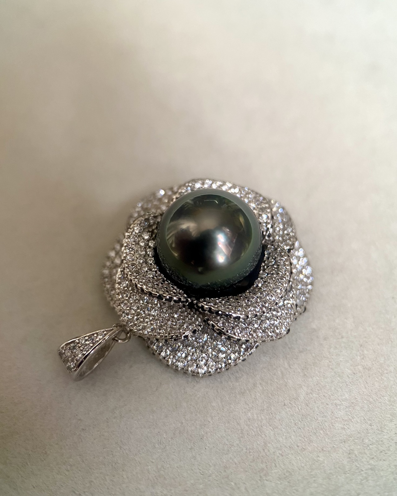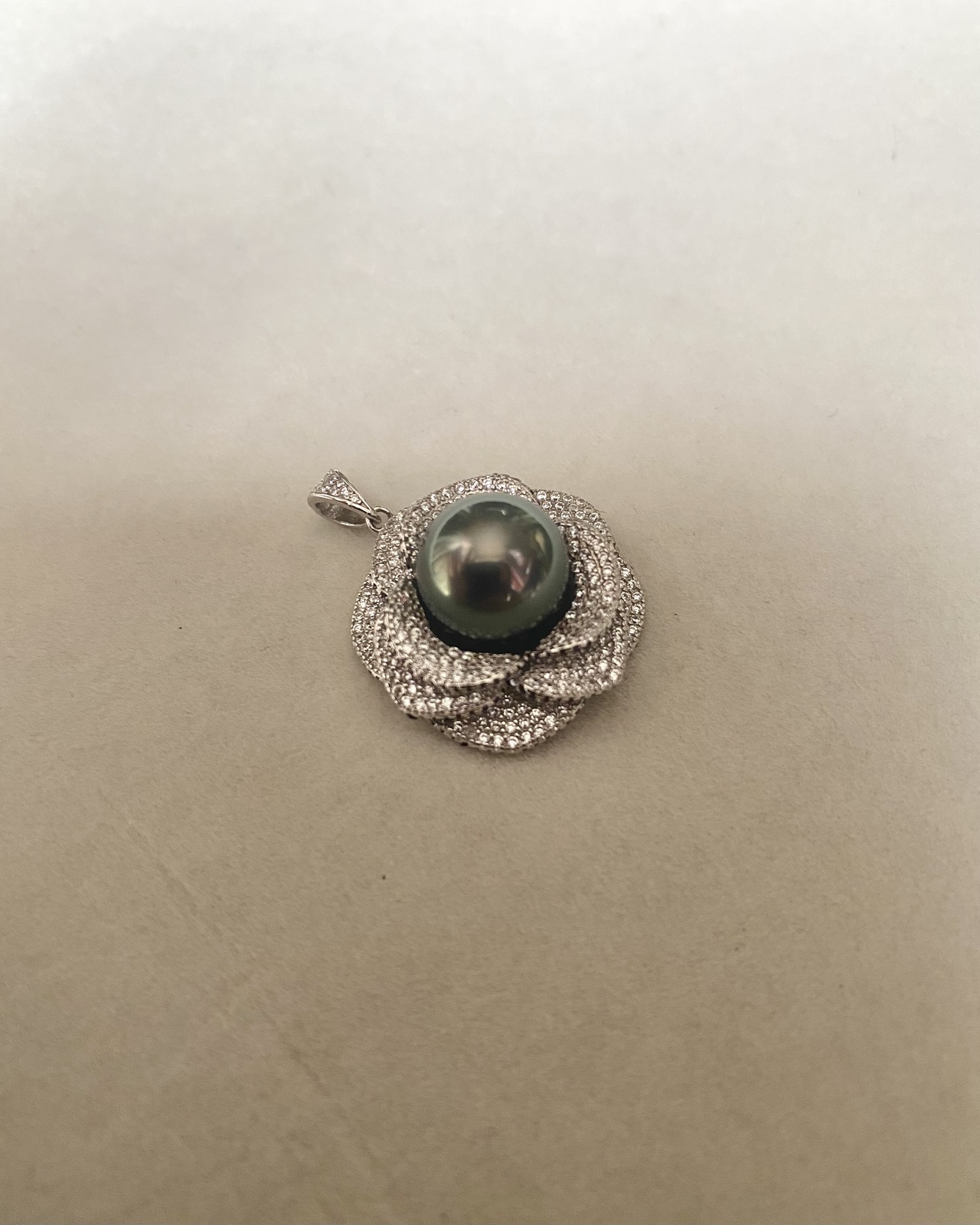 11mm Tahitian Obsidian Green South Sea Pearl Pendant Piaget Rose-Inspired Petals