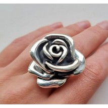 925 STERLING SILVER BEAUTIFUL LARGE PUFFY ROSE RING SIZE 9.5 AT