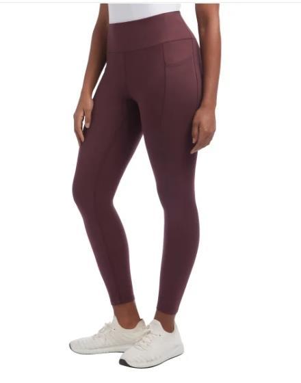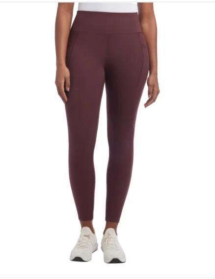 Danskin Womens Leggings Dark Red Pockets Breathable Brushed Midweight Active
