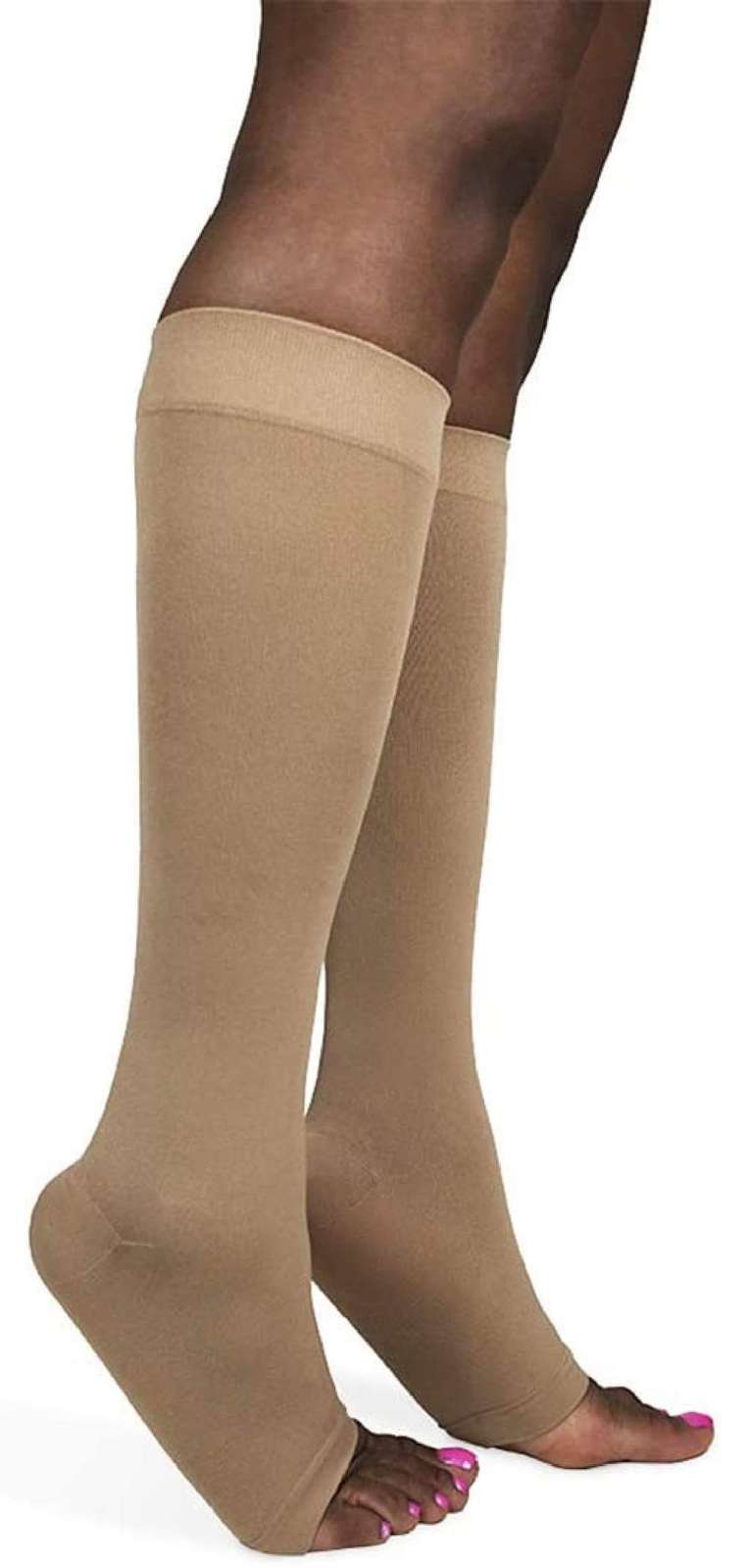 Feature 3 : BEST SUITED FOR: With 15-20 mmHg of support, these open toe compression socks work to relieve edema, stasis, skin changes, and the treatment of leg swelling and vein issues.